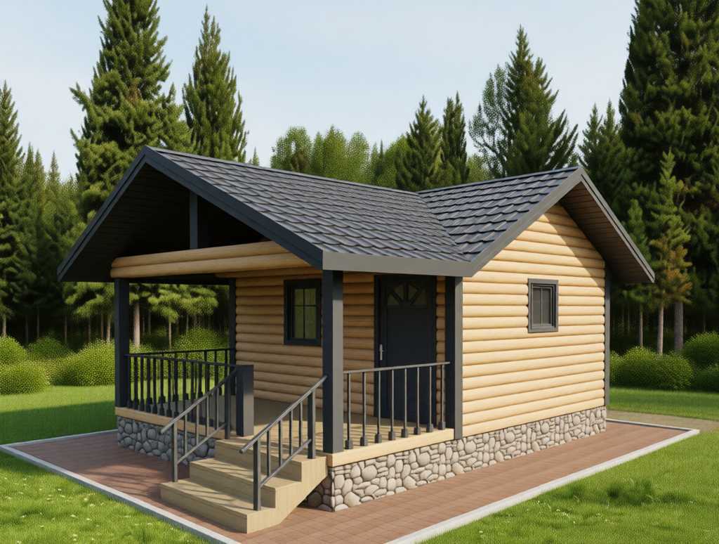 Баня из бруса 4,5 на 6 с верандой площадью 23 м2
