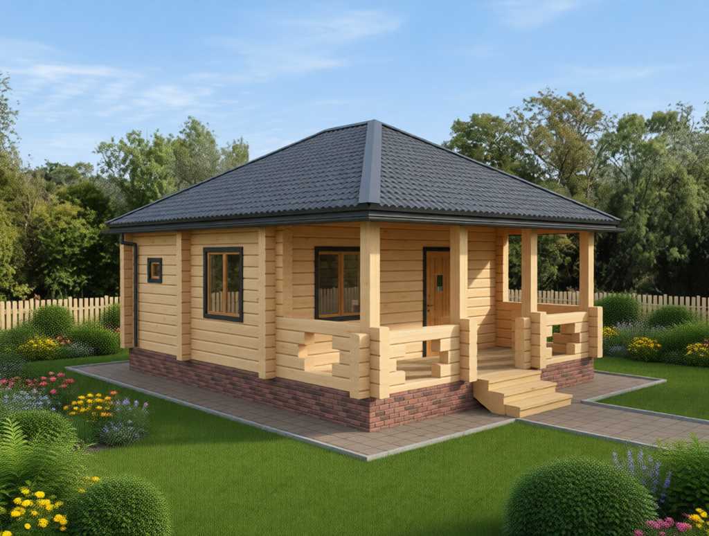 Баня из бруса 5х6 с террасой площадью 39,5 м2