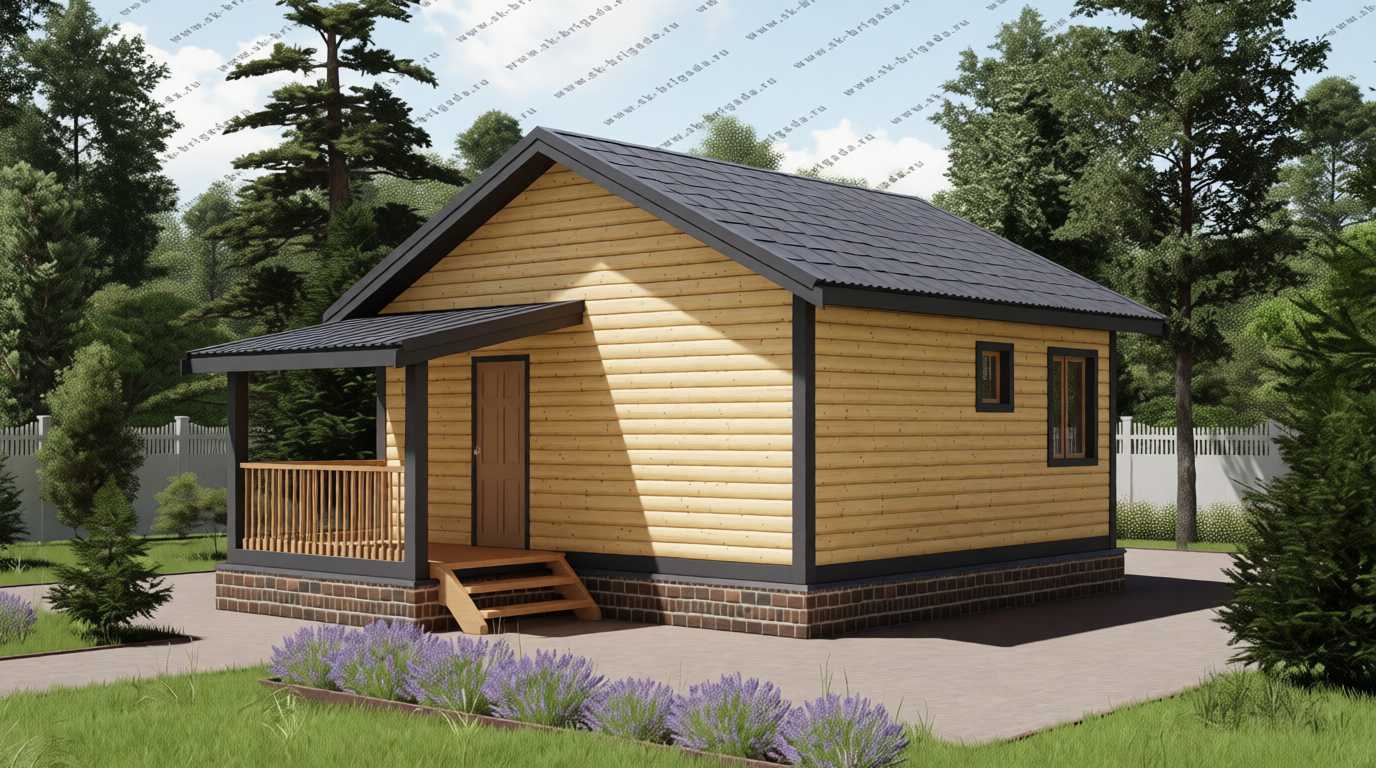 Одноэтажная баня из бруса 6х8 с туалетом площадью 32 м2