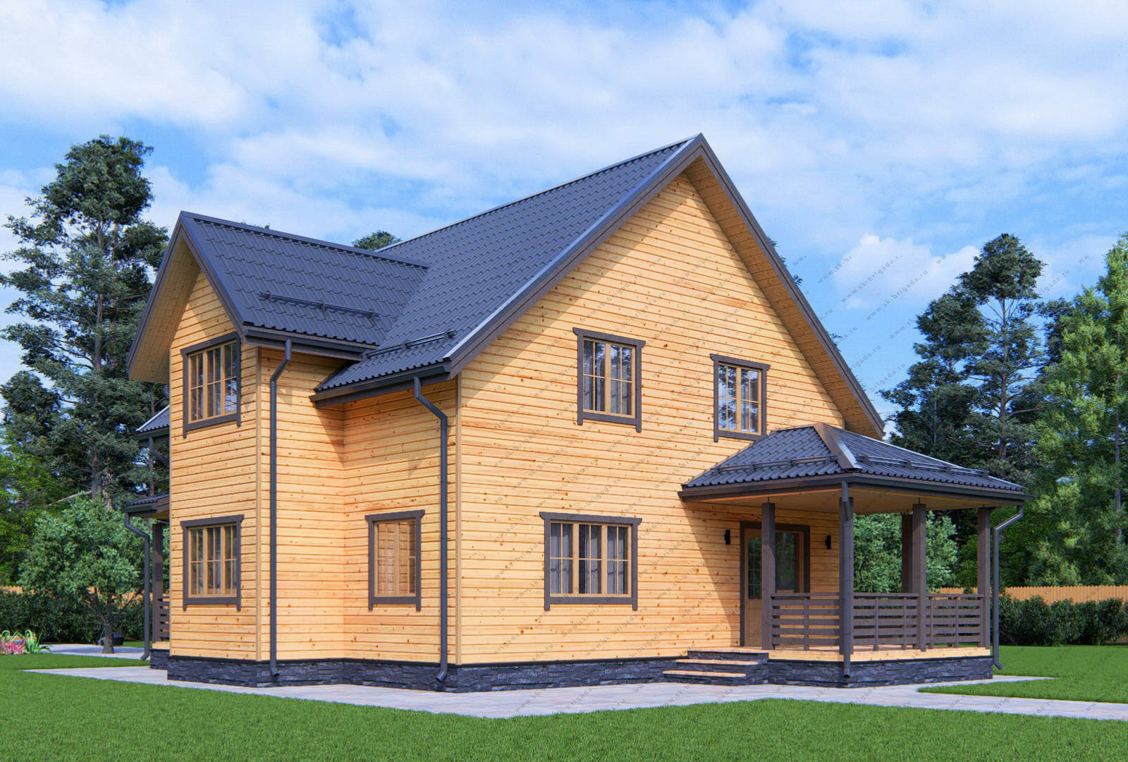 Двухэтажный дом из бруса 10 на 10 площадью 184 м2