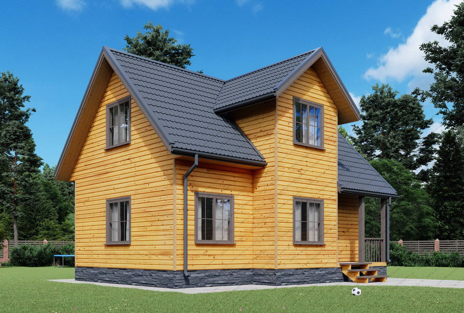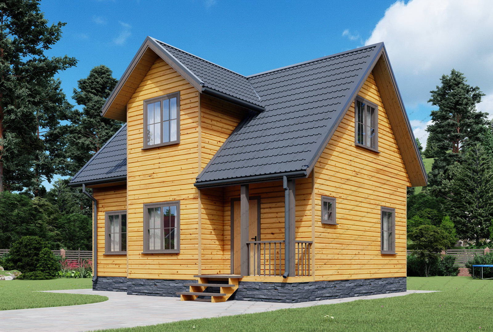 Дом из бруса 6х9 с квадратным эркером площадью 94 м2