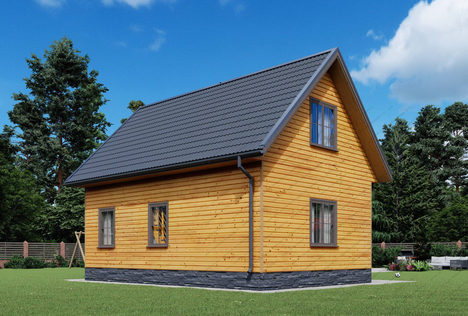 Дом из бруса 6х9 с квадратным эркером в стандартной комплектации имеет временную кровлю из рубероида на время усадки, при желании заказчика ее можно сразу заменить на металлочерепицу за 364000 рублей. В проекте БД-120 можно использовать практически любой кровельный материал (ондулин, ондувиллу, мягкую кровлю и т.п).
