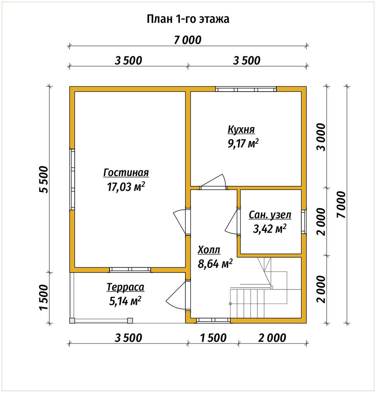 Дом из профилированного бруса 7х7 площадью 93 м2