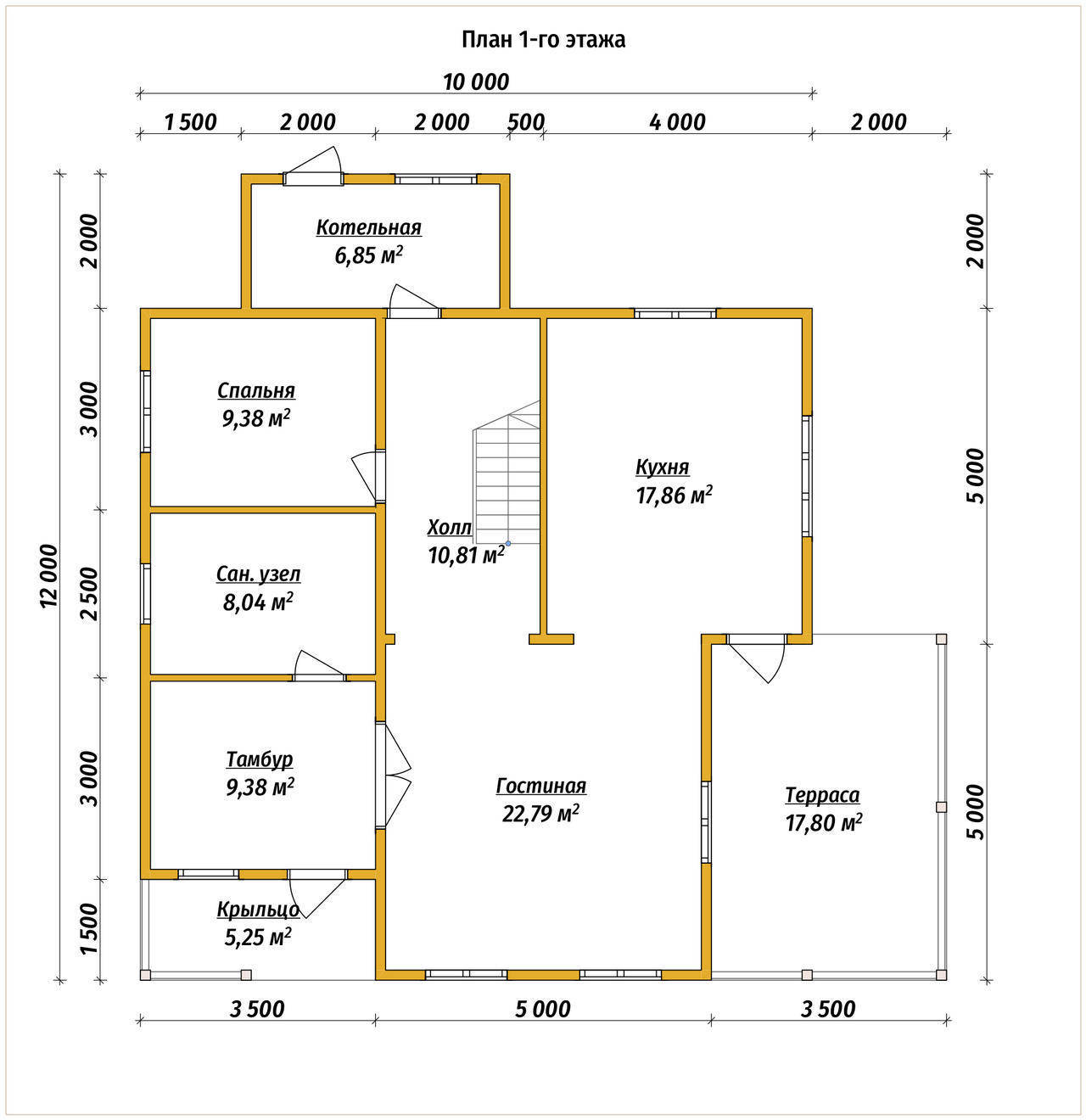 Полутораэтажный дом 10х12 из бруса площадью 206 м2