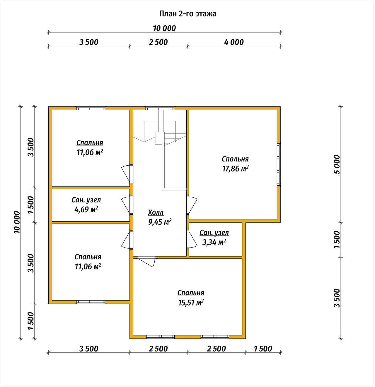 Высота 2-го этажа | 2,5 метра (±50мм) в чистоте | |||