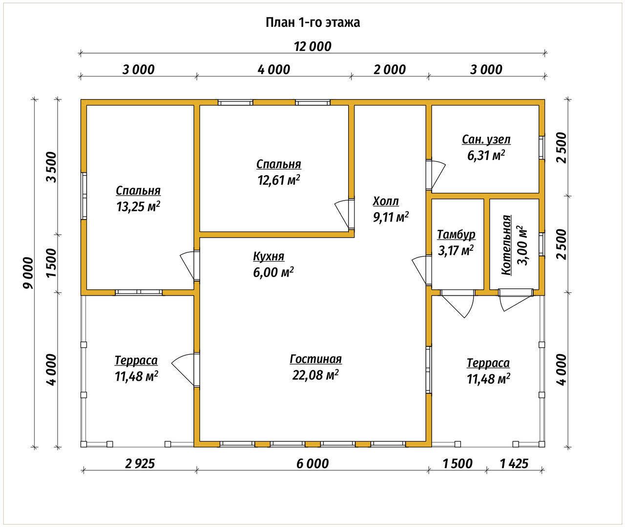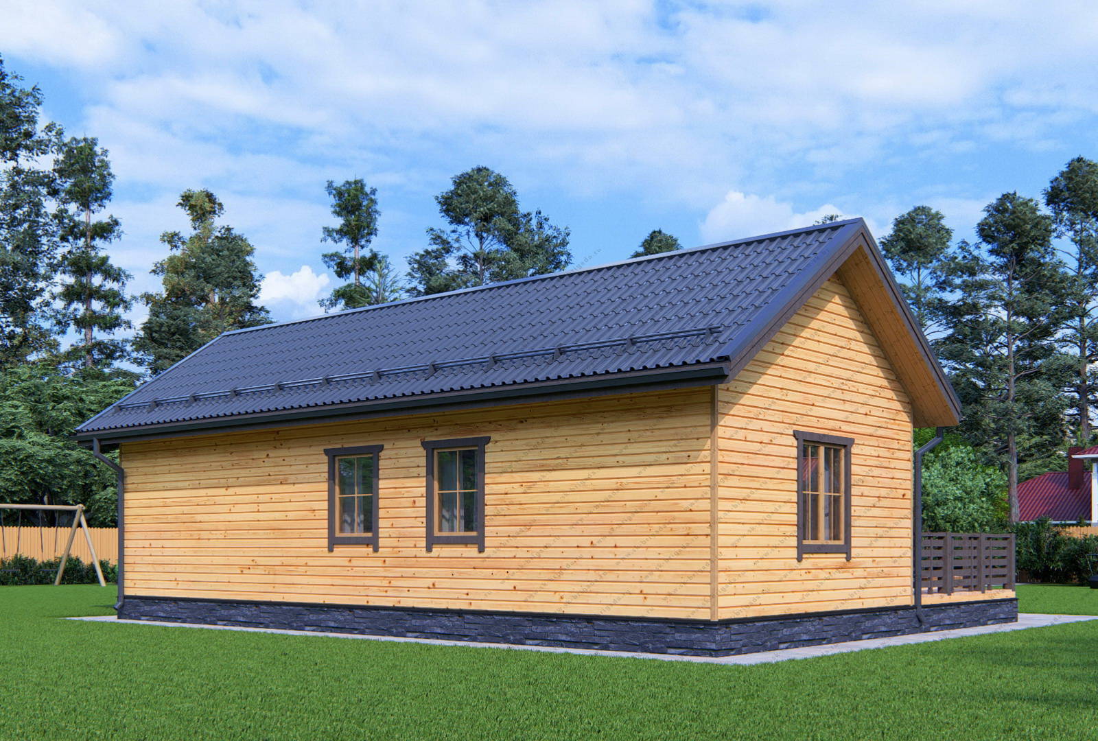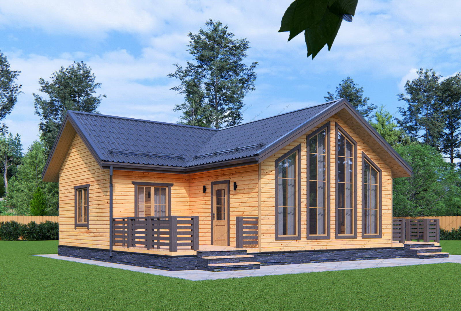 Одноэтажный дом из бруса 9х12 площадью 108 м2