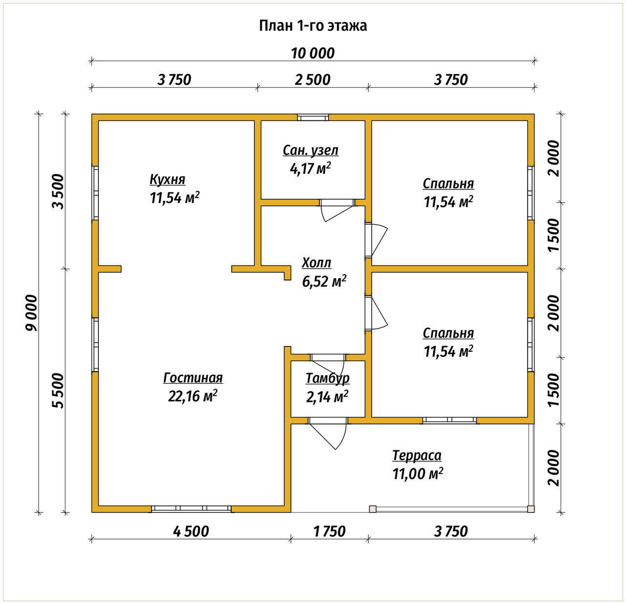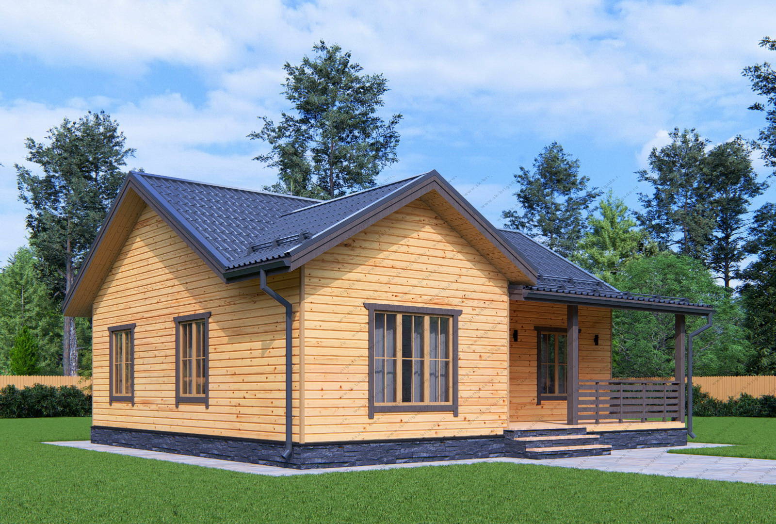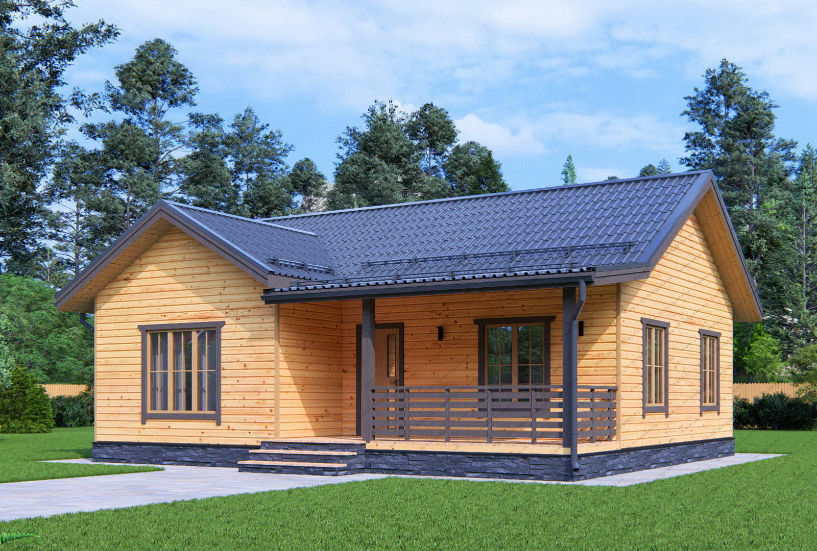 Одноэтажный дом 9 на 10 с террасой площадью 90 м2