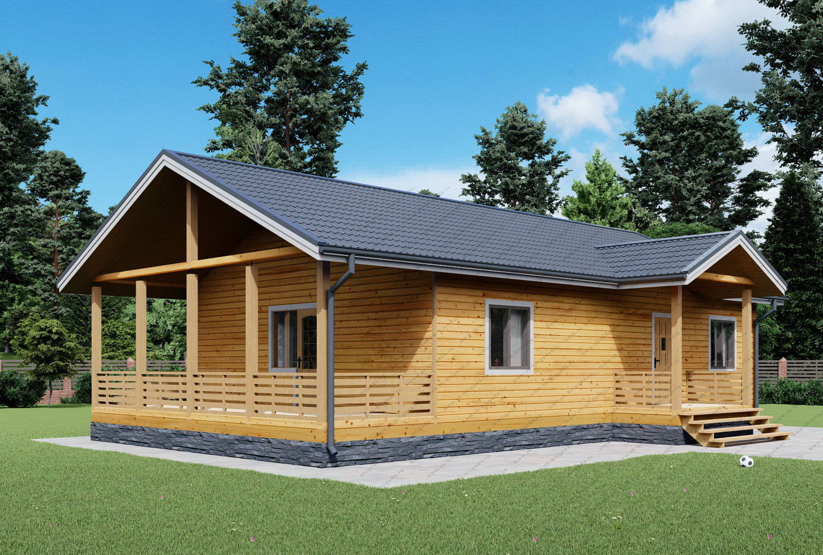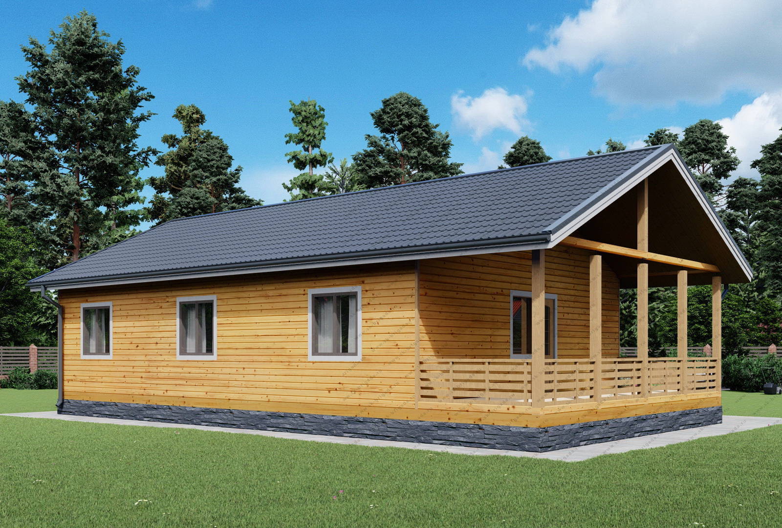 Одноэтажный дом из бруса 8х14 площадью 120 м2