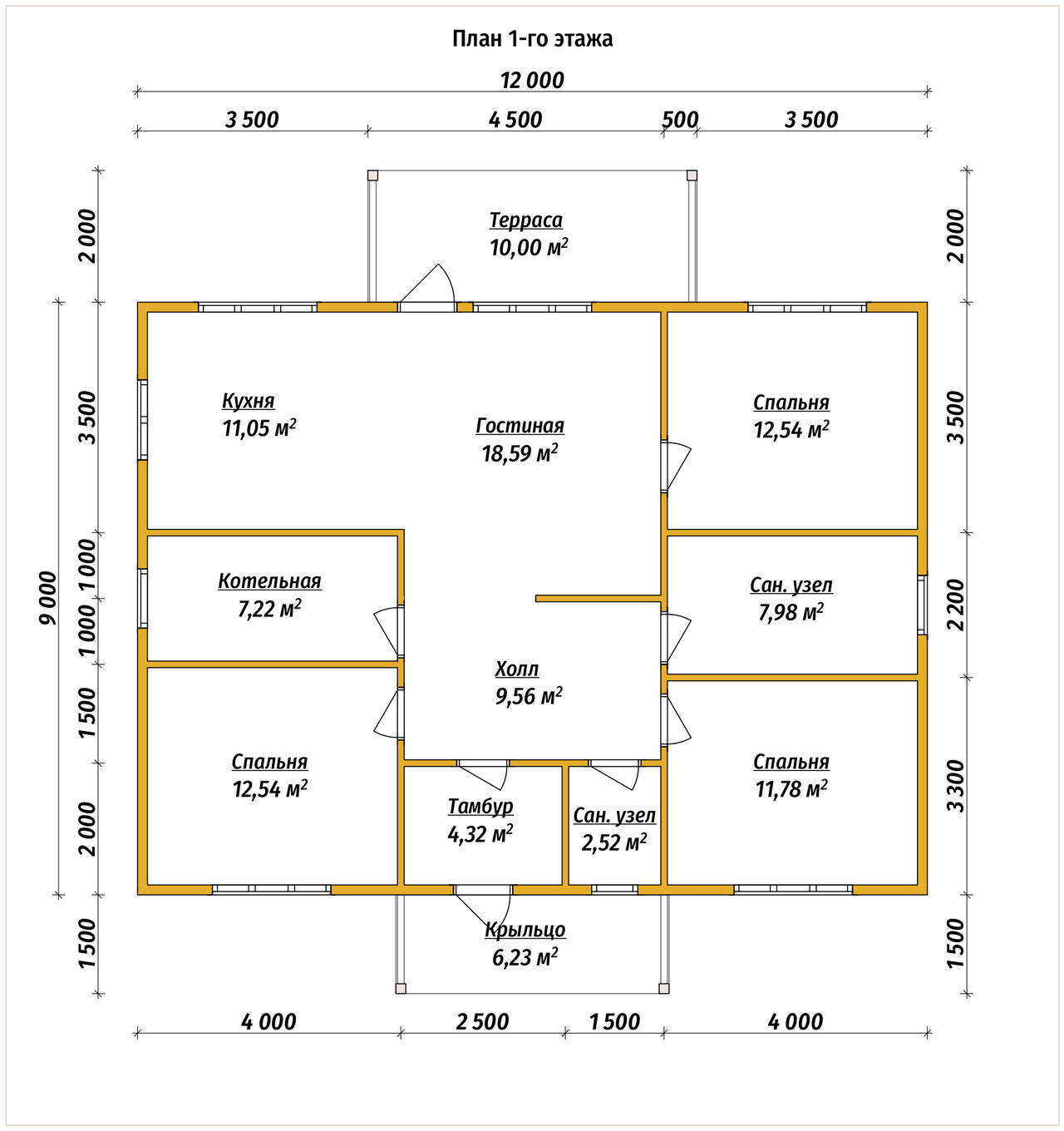 Одноэтажный дом 9х12 из профилированного бруса площадью 124 м2