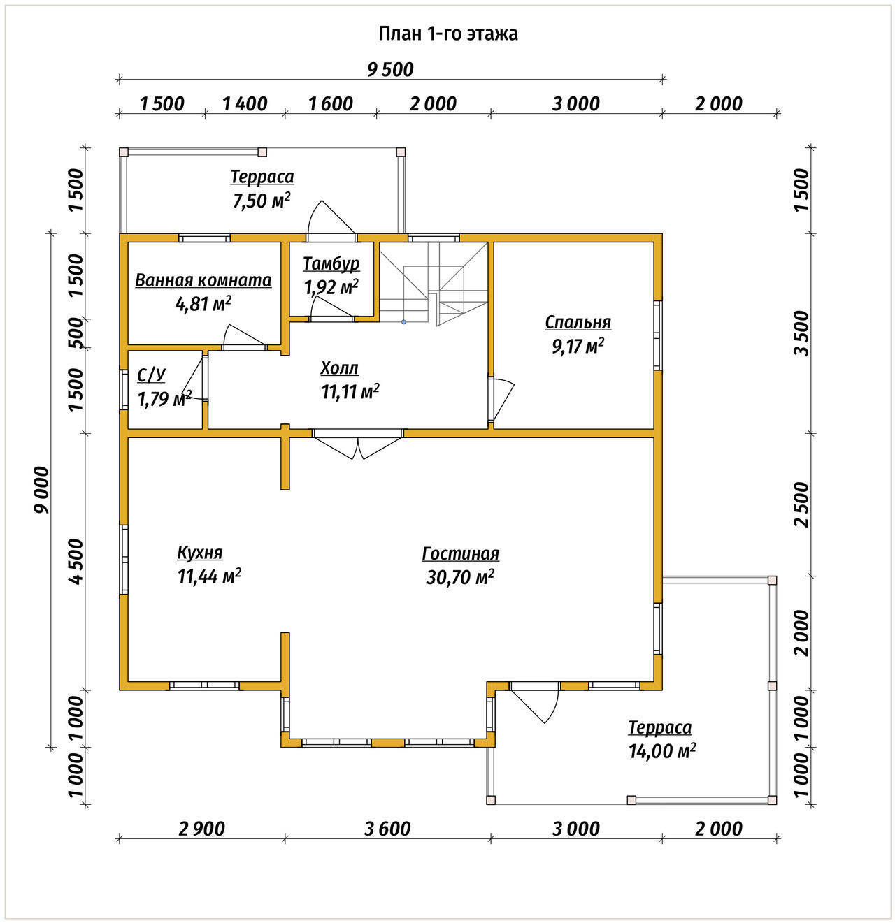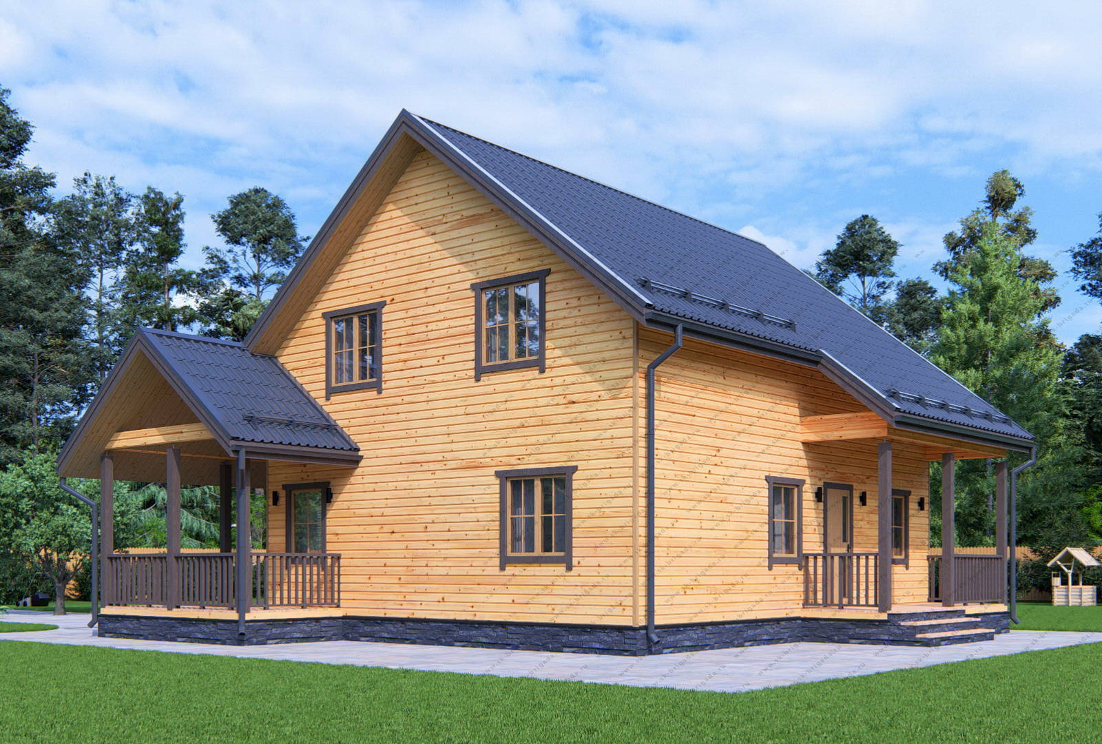 Двухэтажный дом из бруса 9х9 площадью 173 м2
