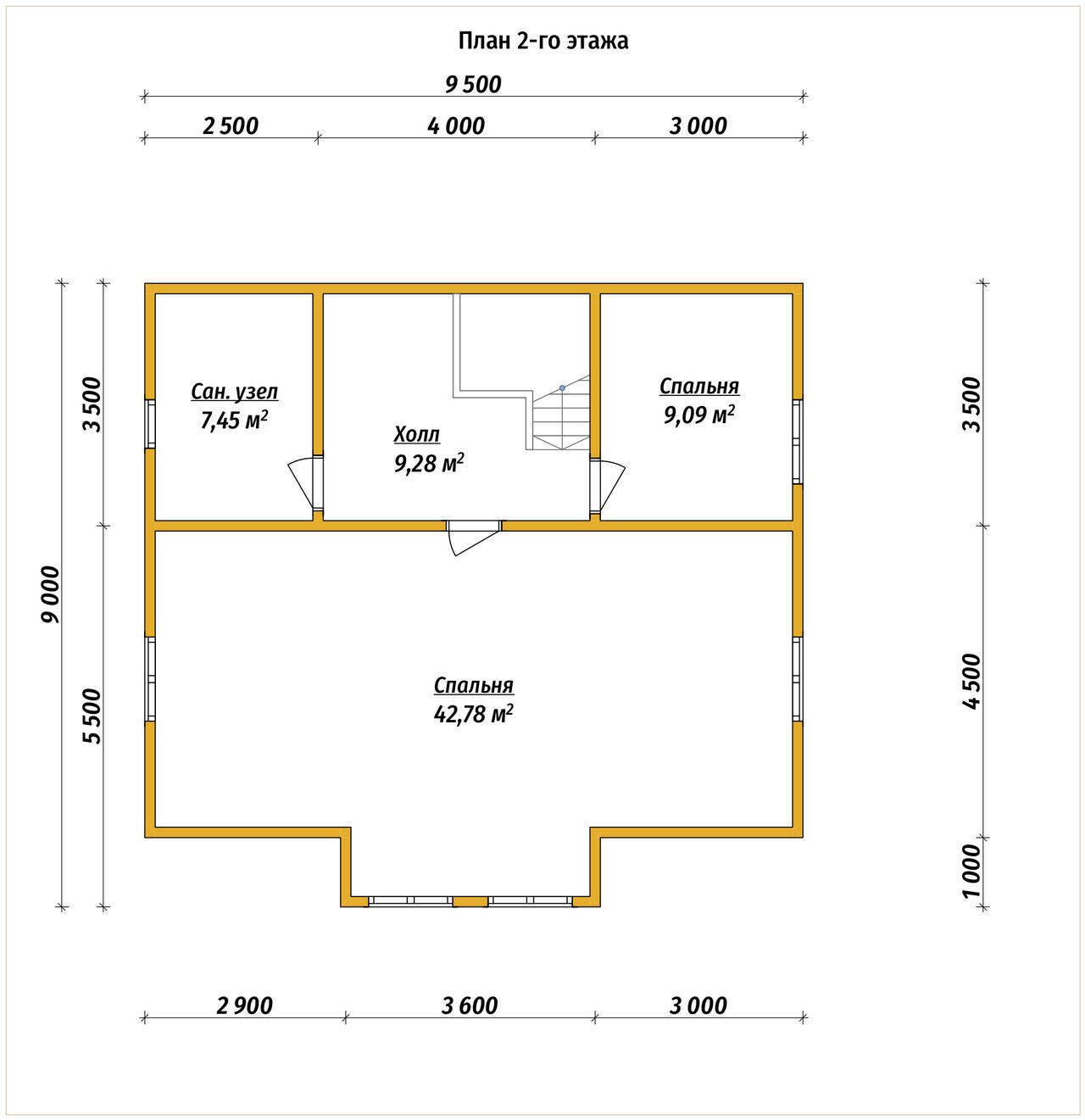 Высота 2-го этажа![]() | 2,5 метра (±50мм) в чистоте | |||