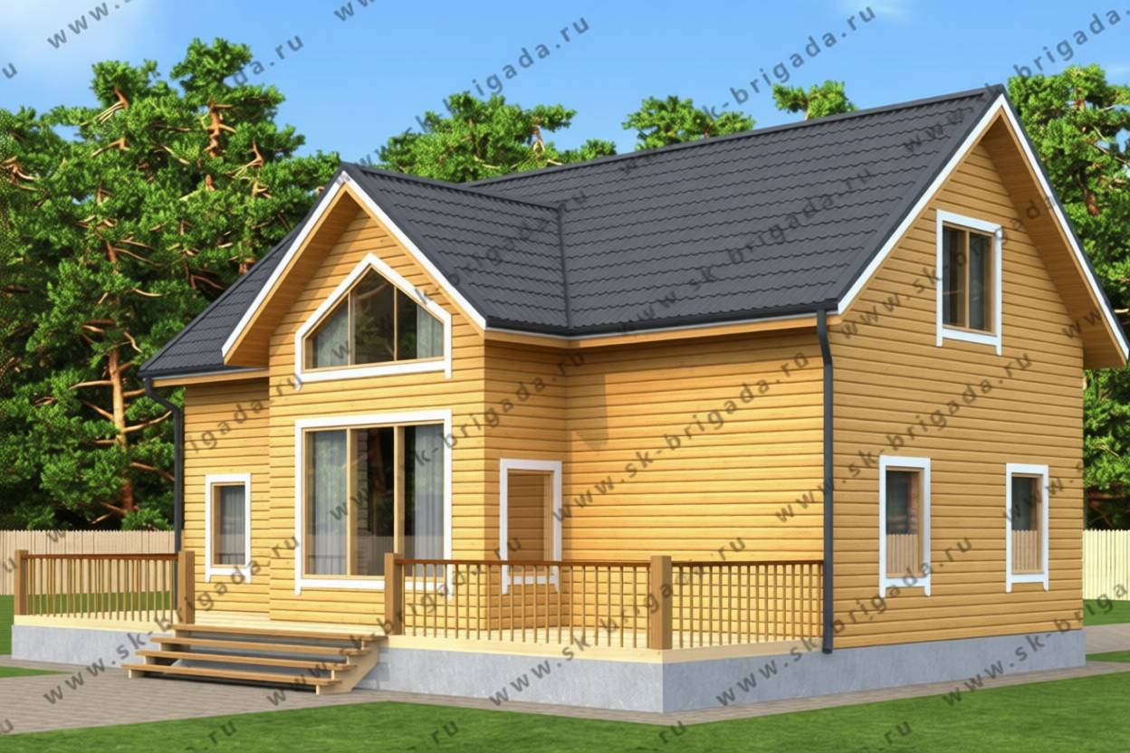 Предлагаем к строительству Дом 9 на 12 с мансардой и террасой общей площадью всех помещений 171 кв.м и габаритными размерами самого сруба 9х12 за 2255000 рублей из обычного бруса сечением 150 на 150 мм или за 2542000 рублей из профилированного бруса сечением 140 на 140 мм. Из сухого профилированного бруса (камерной сушки) Дом 9 на 12 с мансардой и террасой обойдется 2700000 рублей под ключ.