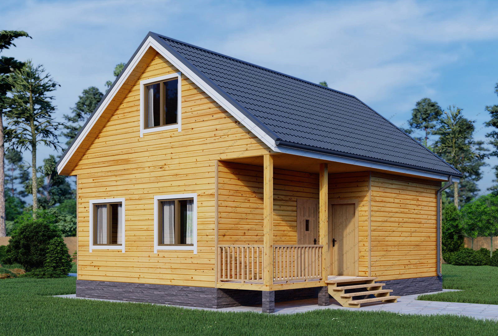 Дом-баня 7 на 9 из бруса площадью 108 м2