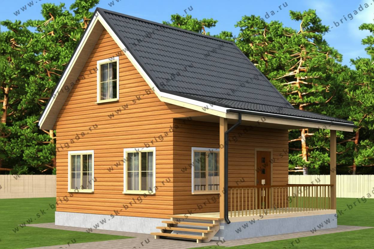 Садовый домик 6х6 с мансардой и верандой площадью 69 м2