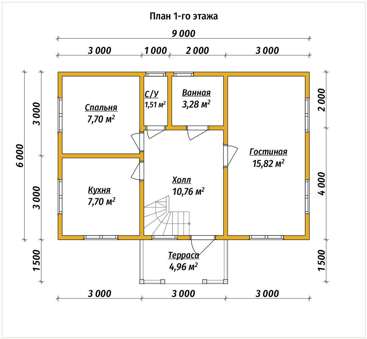 Дом из бруса 6х9 с мансардой площадью 97 м2