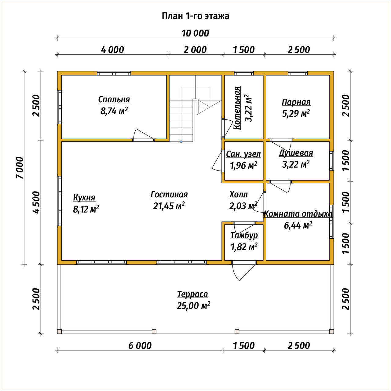 Предлагаем к строительству Дом-баня 7х10 из бруса общей площадью всех помещений 165 кв.м и габаритными размерами самого сруба 7х10 за 1708000 рублей из обычного бруса сечением 150 на 150 мм или за 1959000 рублей из профилированного бруса сечением 140 на 140 мм. Из сухого профилированного бруса (камерной сушки) Дом-баня 7х10 из бруса обойдется 2076000 рублей под ключ.