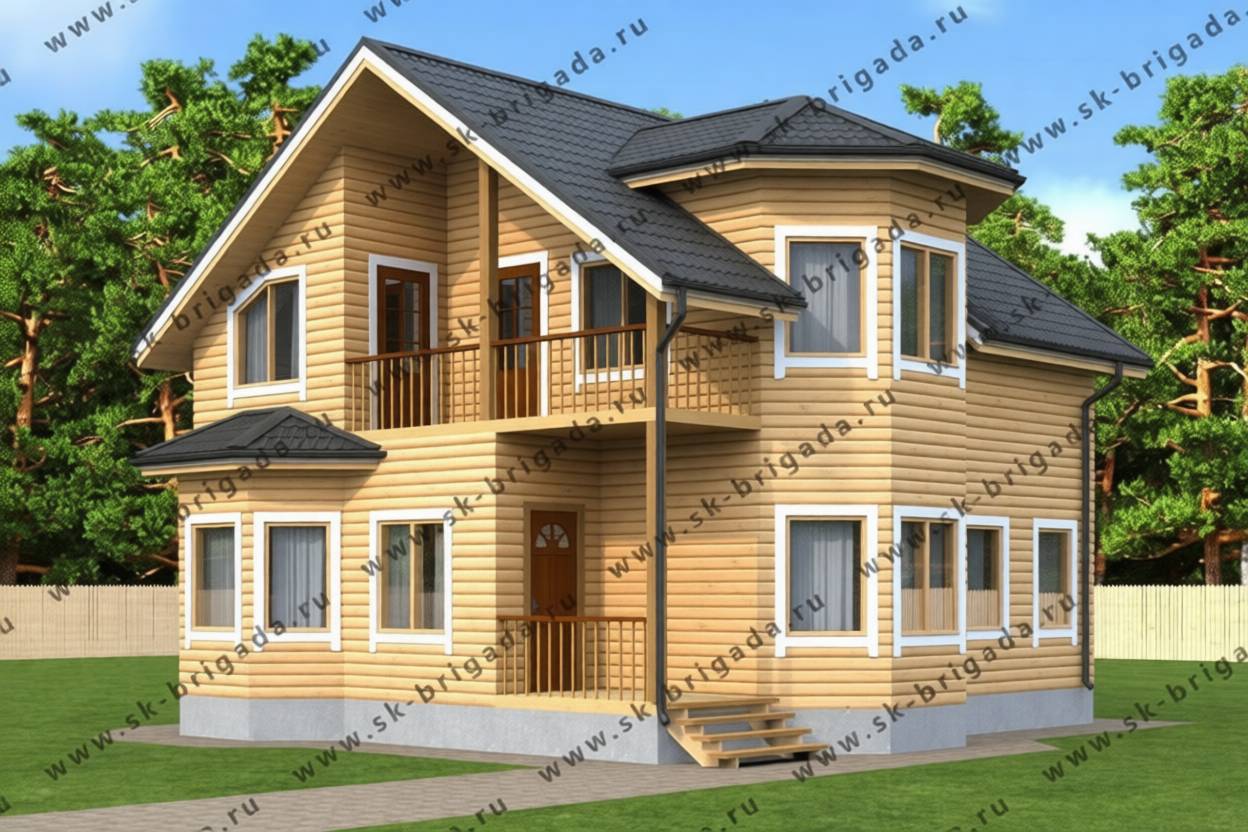 Предлагаем к строительству Проект двухэтажного дома с эркером и балконом общей площадью всех помещений 131 кв.м и габаритными размерами самого сруба 8х9,8 за 2348000 рублей из обычного бруса сечением 150 на 150 мм или за 2615000 рублей из профилированного бруса сечением 140 на 140 мм. Из сухого профилированного бруса (камерной сушки) Проект двухэтажного дома с эркером и балконом обойдется 2780000 рублей под ключ.