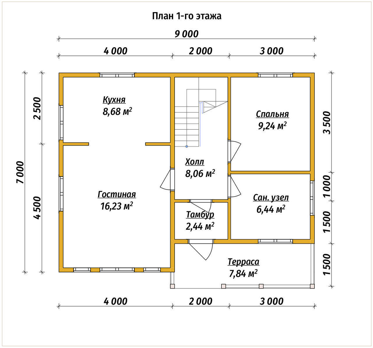 Полутораэтажный дом из бруса 7х9 площадью 123 м2