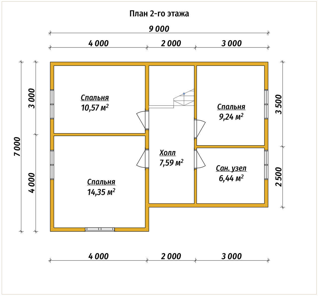 Высота 2-го этажа | 2,5 метра (±50мм) в чистоте | |||