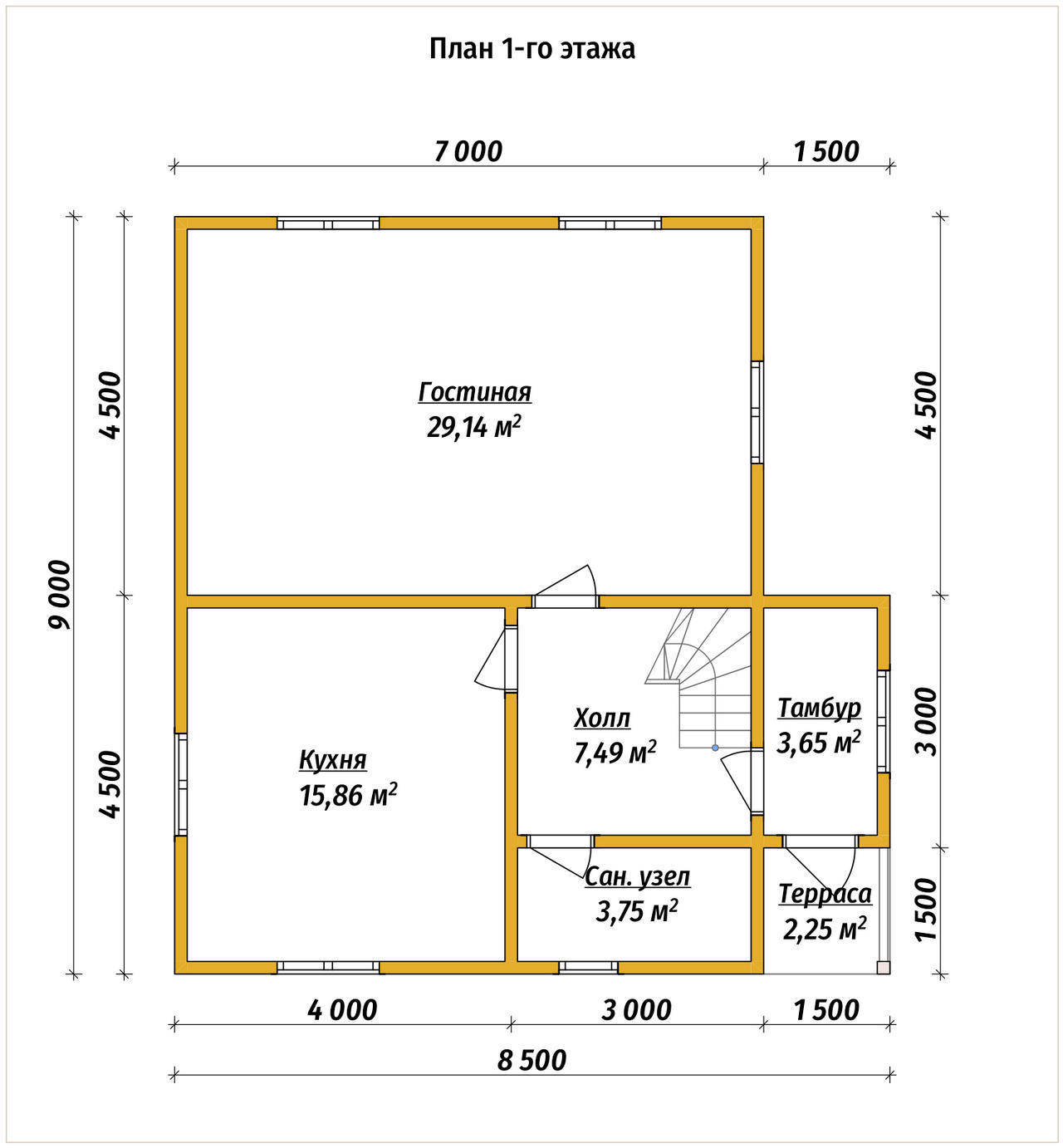 Шикарный дом из бруса 8,5х9 в 2 этажа площадью 132 м2
