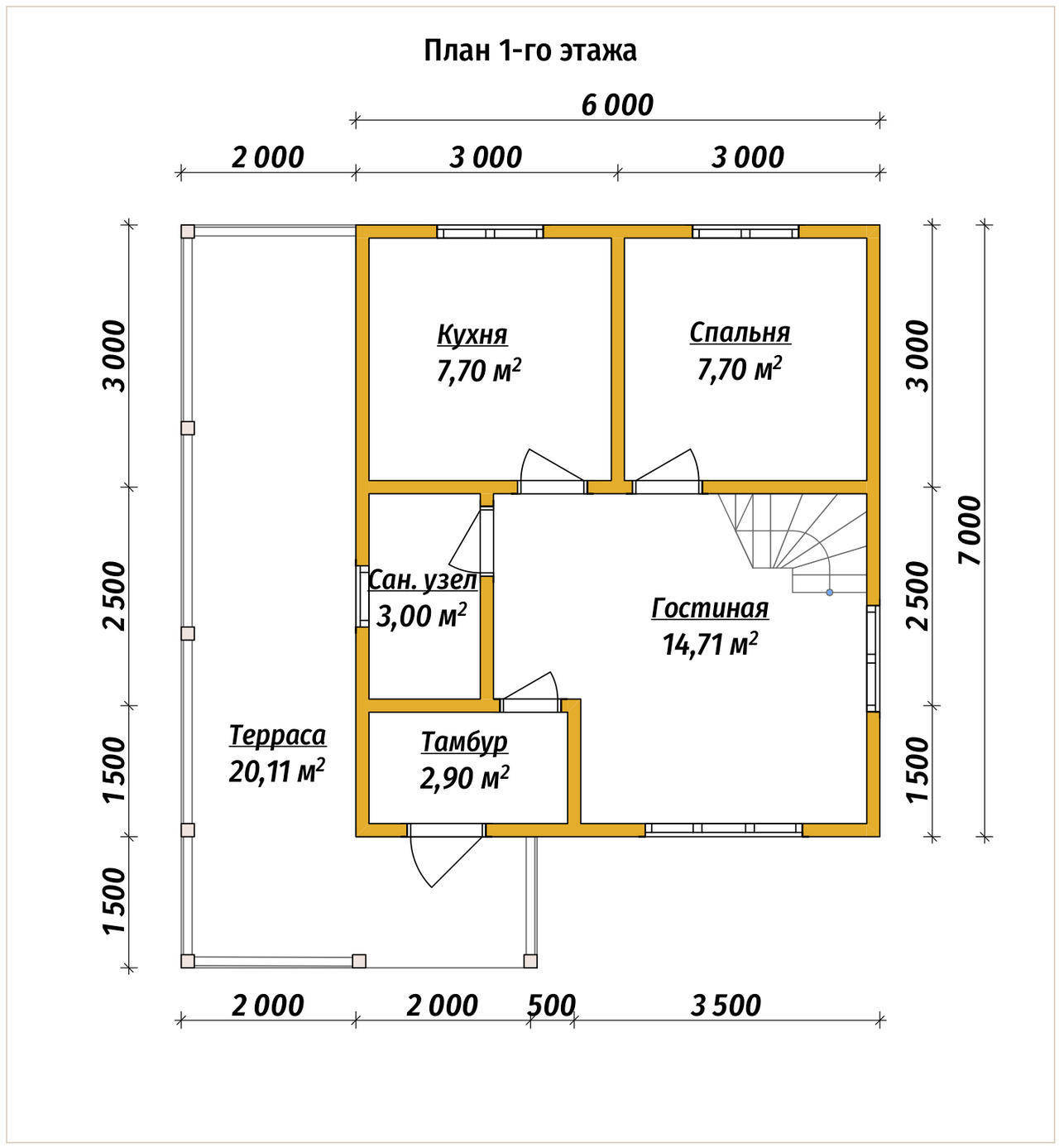 Предлагаем к строительству Малогабаритный дом для постоянного проживания общей площадью всех помещений 104 кв.м и габаритными размерами самого сруба 6х7 за 1376000 рублей из обычного бруса сечением 150 на 150 мм или за 1600000 рублей из профилированного бруса сечением 140 на 140 мм. Из сухого профилированного бруса (камерной сушки) Малогабаритный дом для постоянного проживания обойдется 1689000 рублей под ключ.