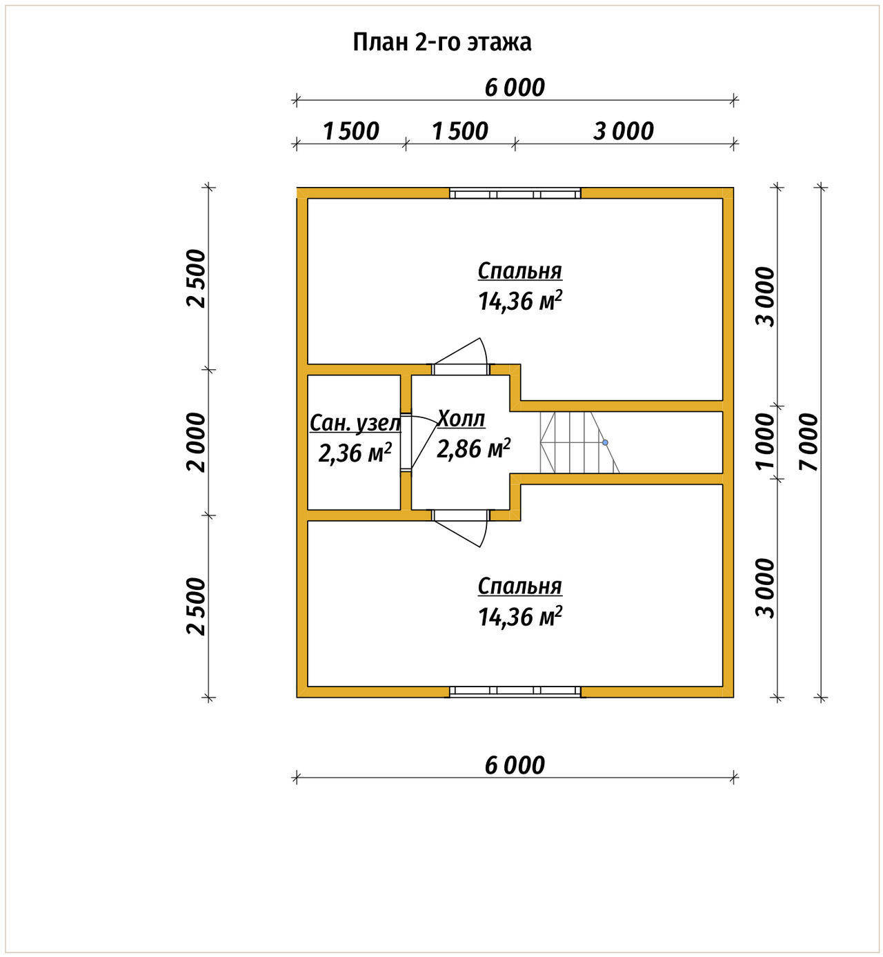 Высота 2-го этажа | 2,5 метра (±50мм) в чистоте | |||