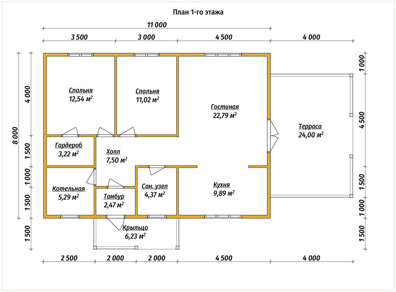 Одноэтажный дом из бруса 8х15 площадью 118 м2