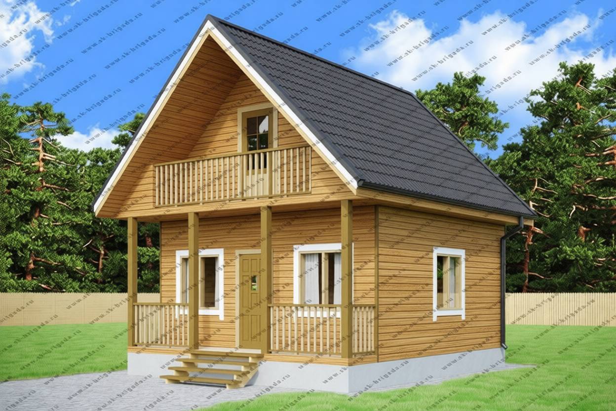 Предлагаем к строительству Дачный дом 6х7 с террасой общей площадью всех помещений 64 кв.м и габаритными размерами самого сруба 6х7 за 736000 рублей из обычного бруса сечением 150 на 150 мм или за 820000 рублей из профилированного бруса сечением 140 на 140 мм. Из сухого профилированного бруса (камерной сушки) Дачный дом 6х7 с террасой обойдется 861000 рублей под ключ.