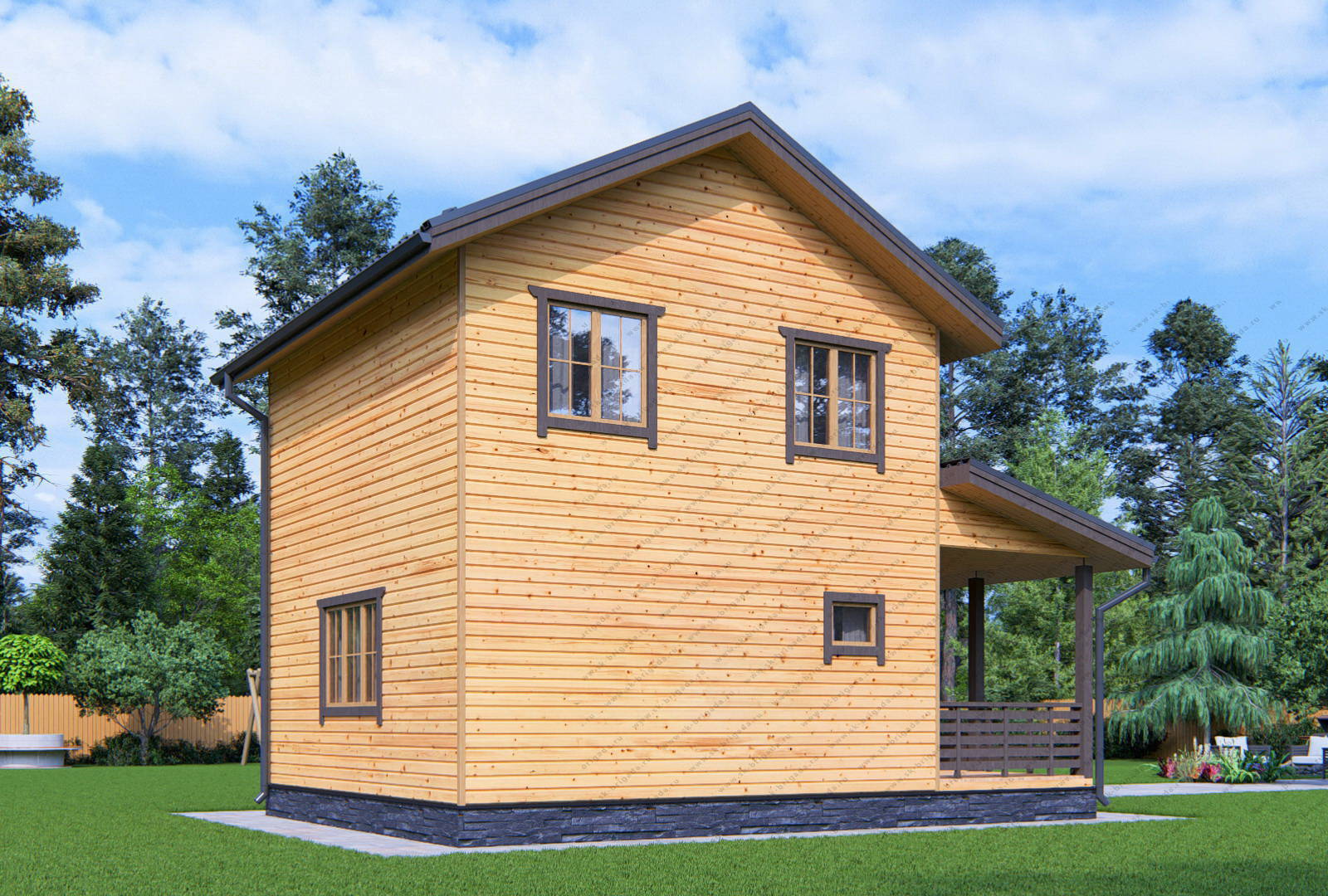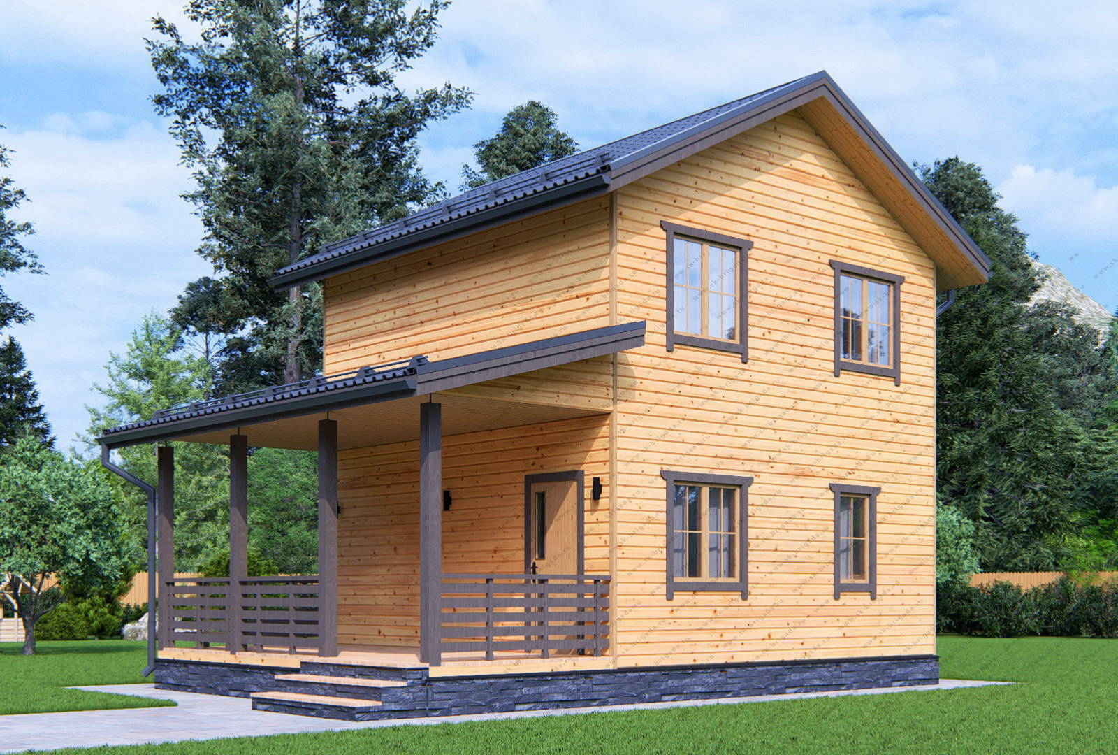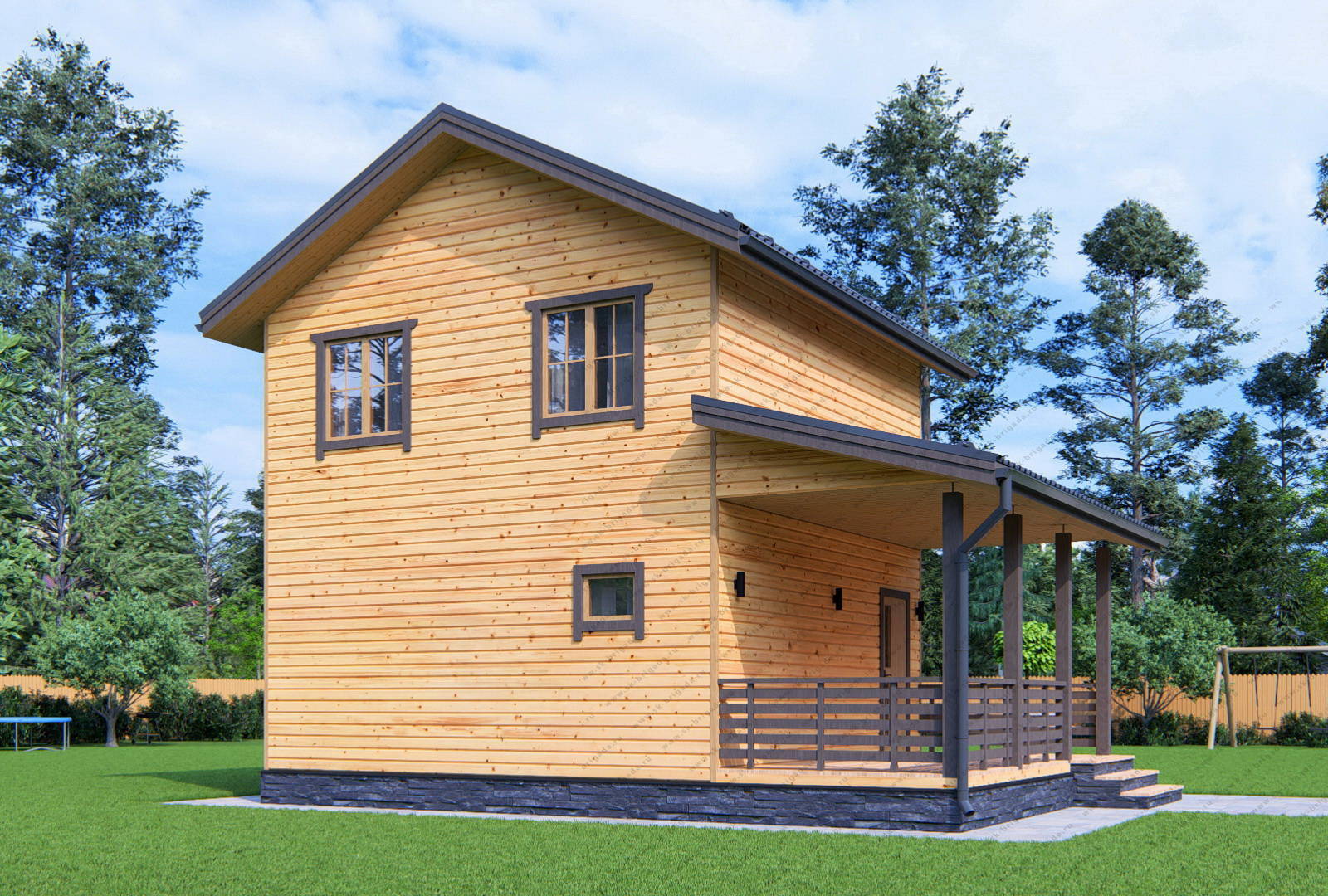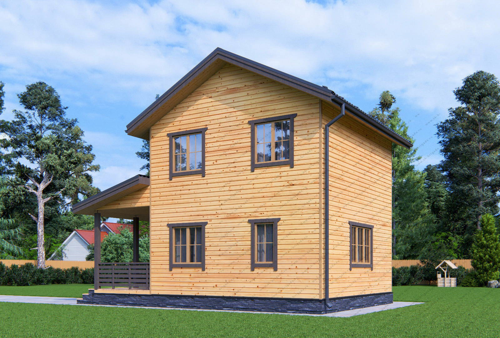 Двухэтажный дом из бруса 6х6 площадью 87 м2