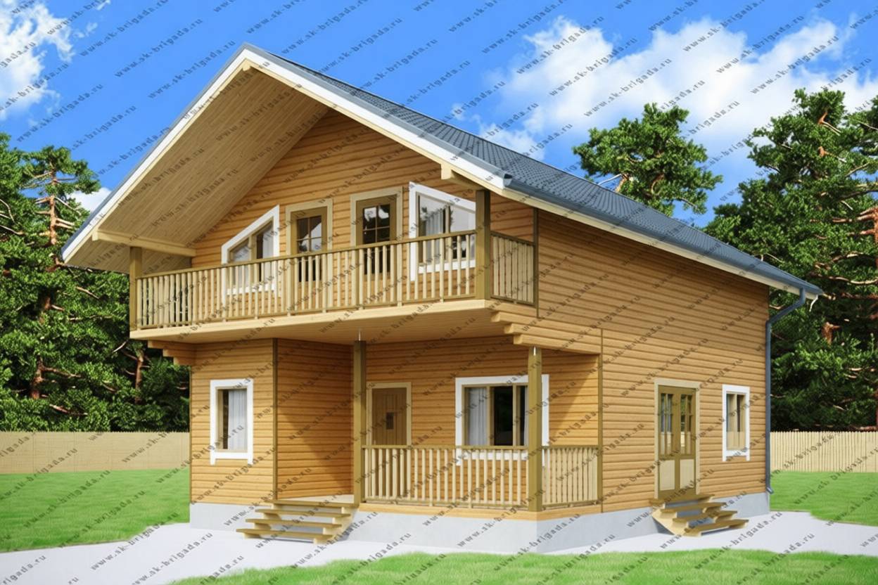 Предлагаем к строительству Дом из бруса с балконом над террасой общей площадью всех помещений 140 кв.м и габаритными размерами самого сруба 7,7х10,2 за 1873000 рублей из обычного бруса сечением 150 на 150 мм или за 2105000 рублей из профилированного бруса сечением 140 на 140 мм. Из сухого профилированного бруса (камерной сушки) Дом из бруса с балконом над террасой обойдется 2235000 рублей под ключ.
