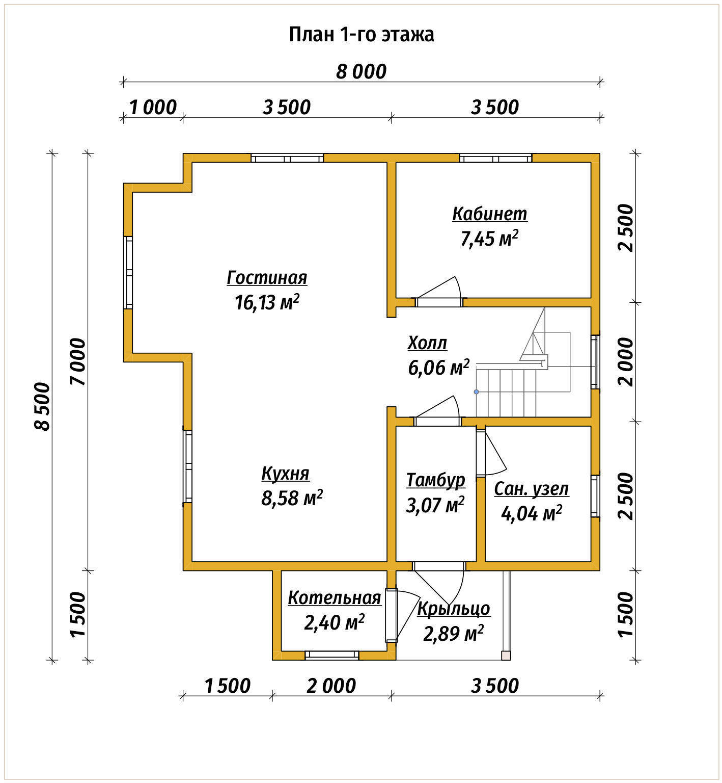 Дом из бруса 8х8 с котельной площадью 107 м2