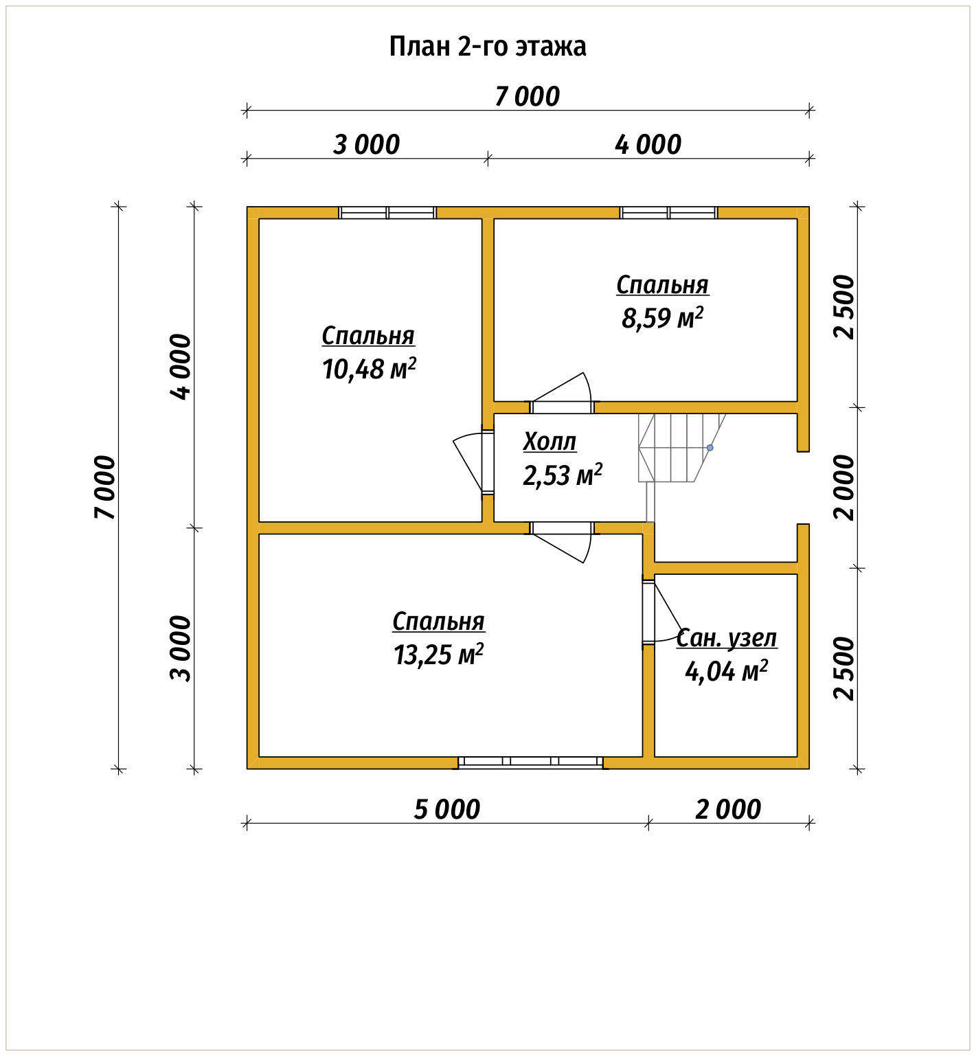 Высота 2-го этажа | 2,5 метра (±50мм) в чистоте | |||