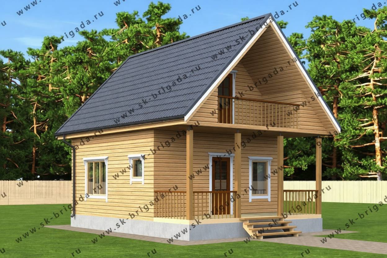 Дачный дом 6х6 с террасой 2х6 площадью 74 м2