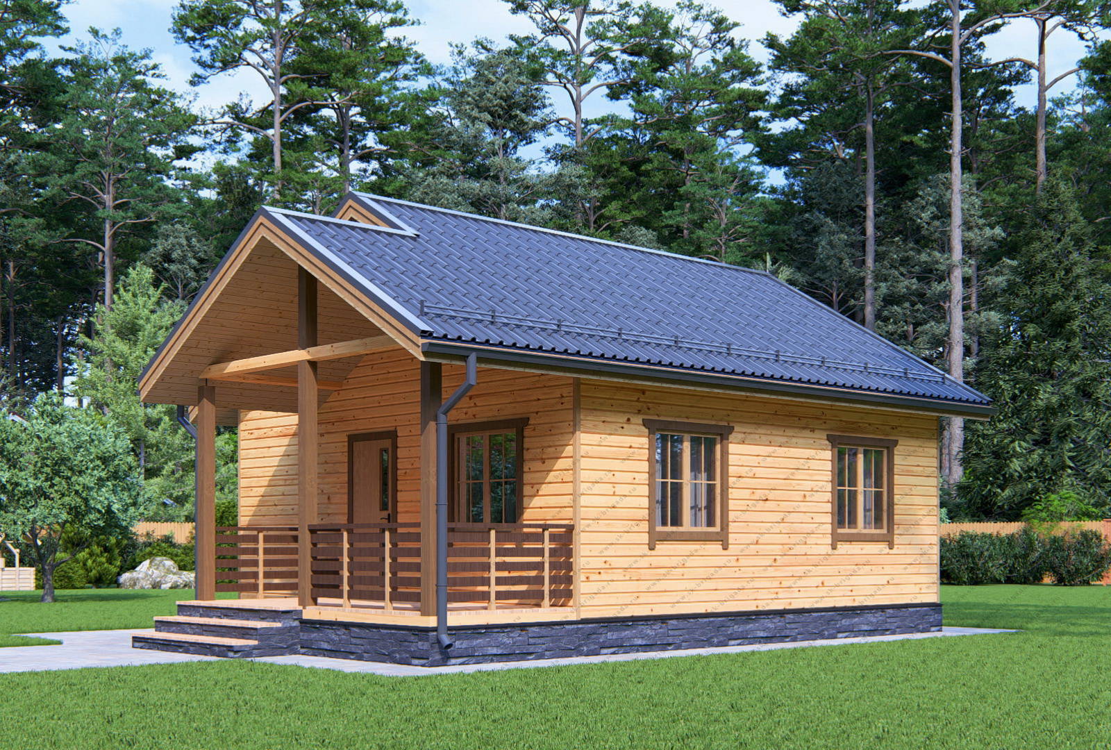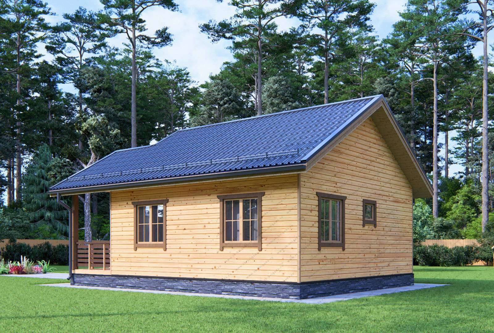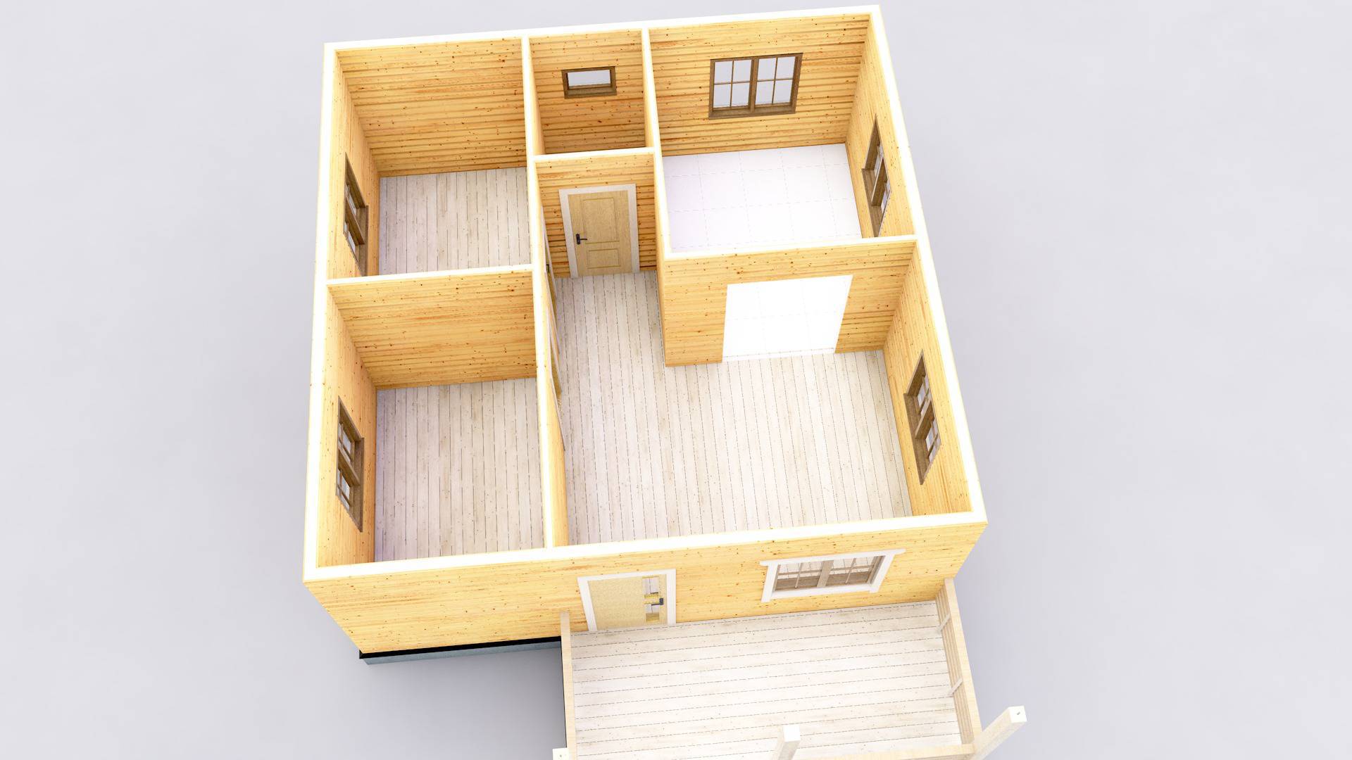 Одноэтажный дом 7х7 из бруса площадью 58 м2