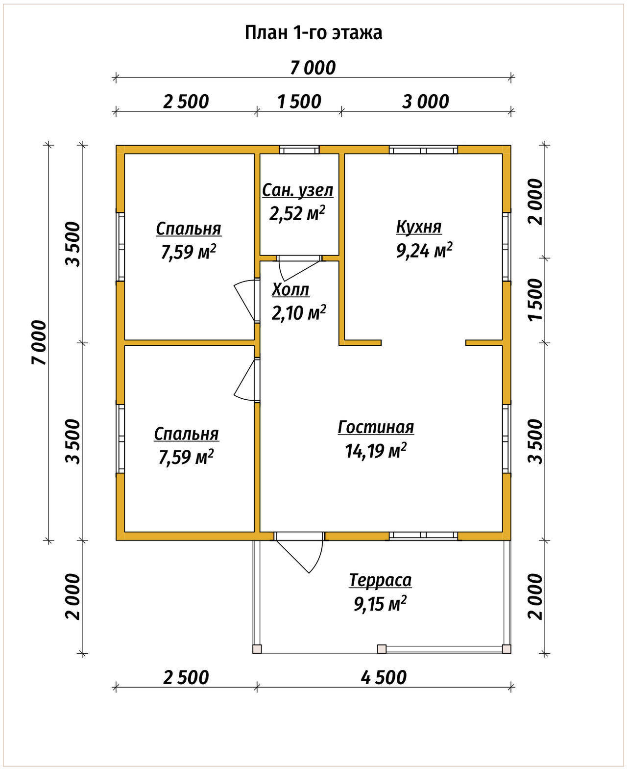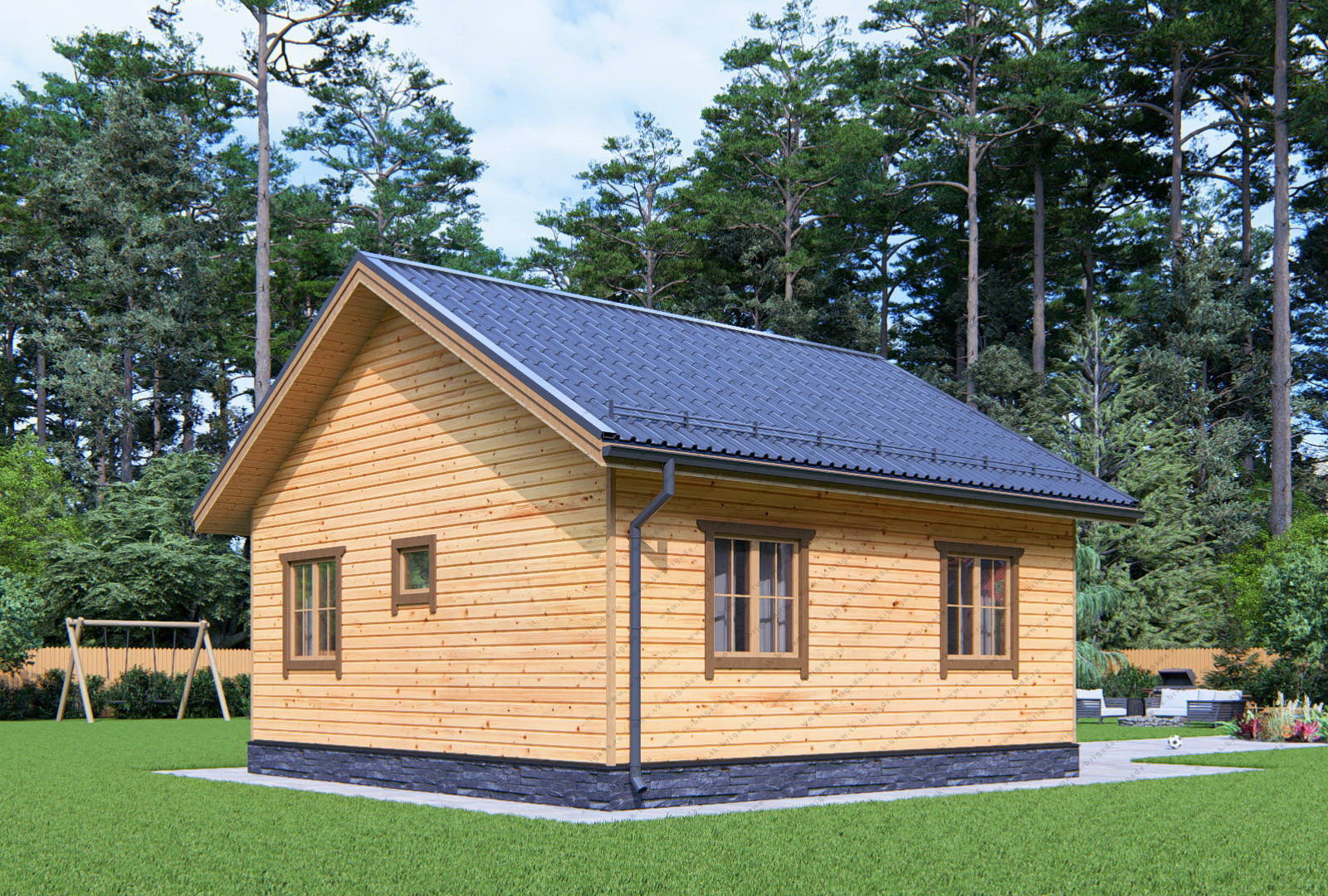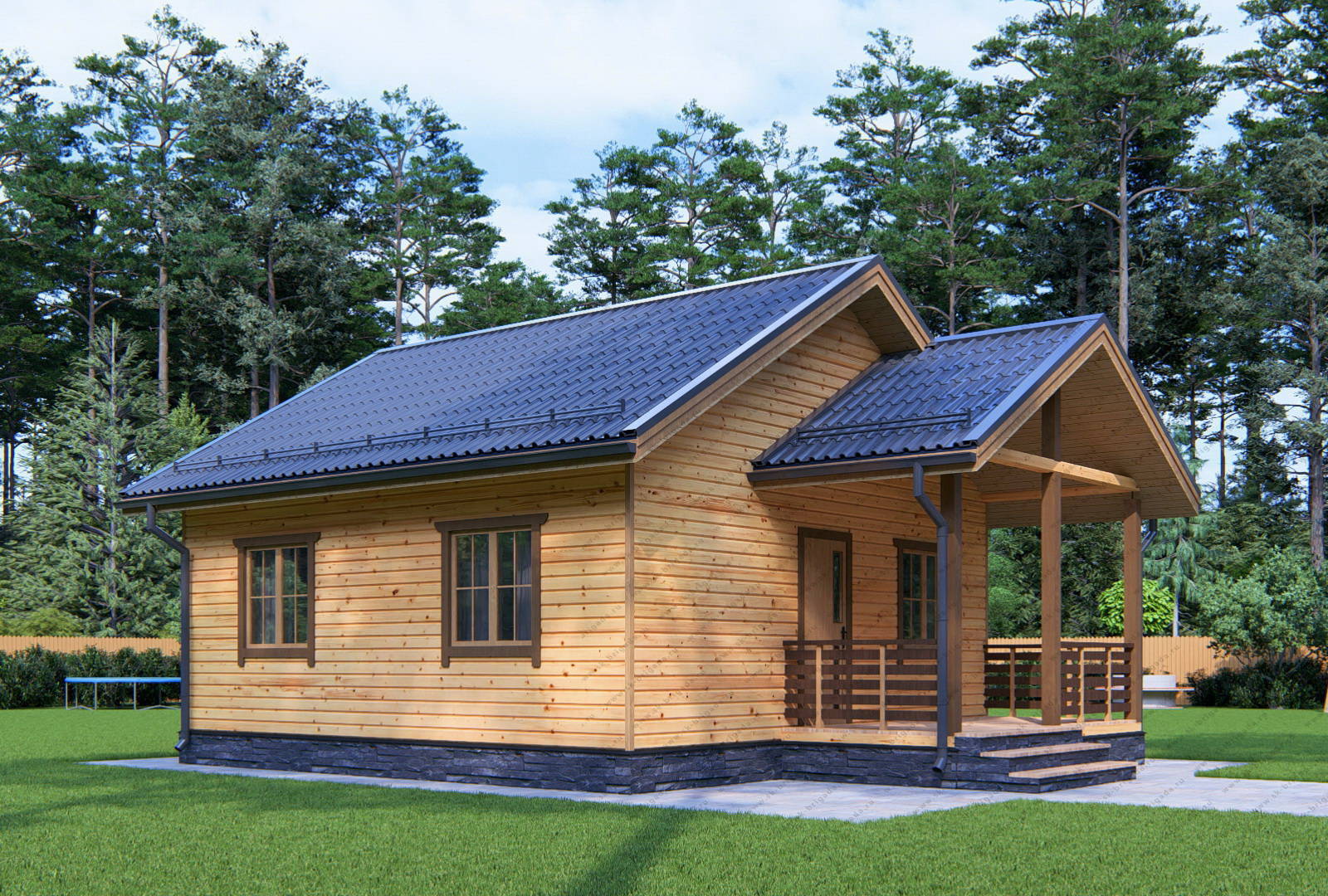 Одноэтажный дом 7х7 из бруса площадью 58 м2