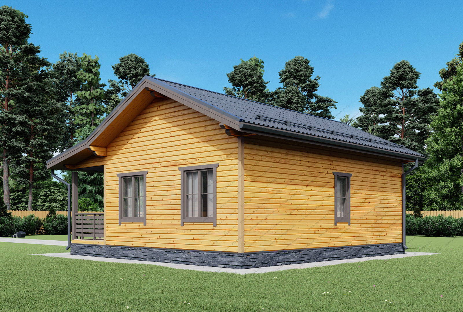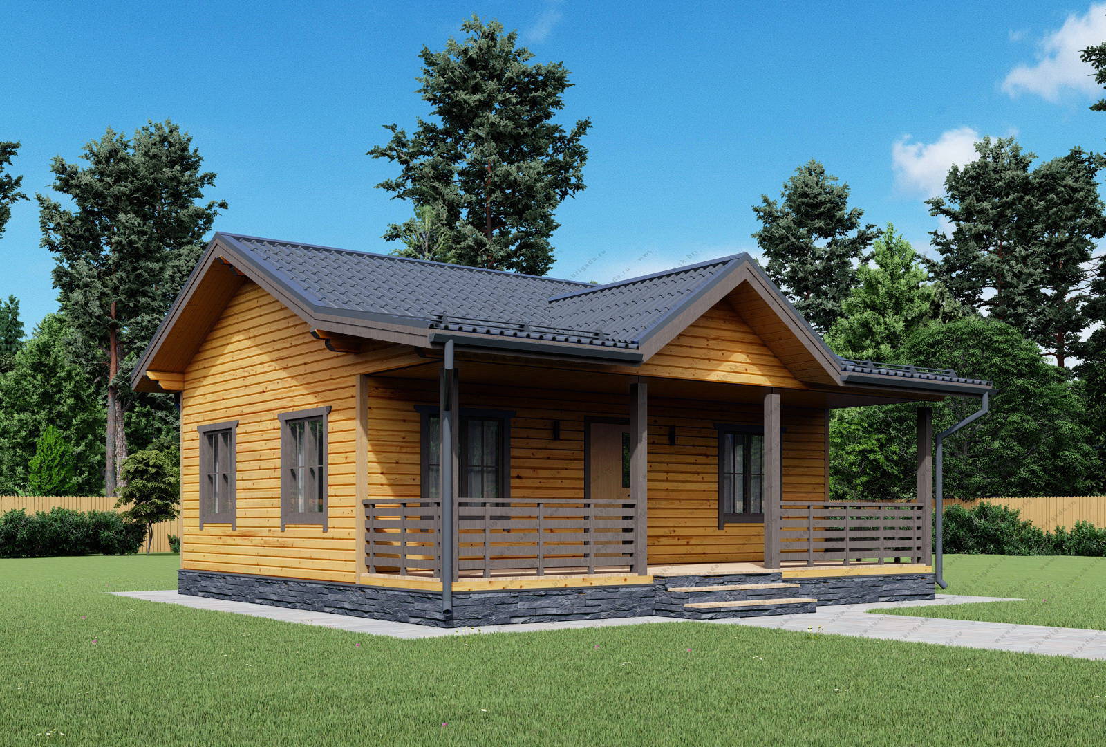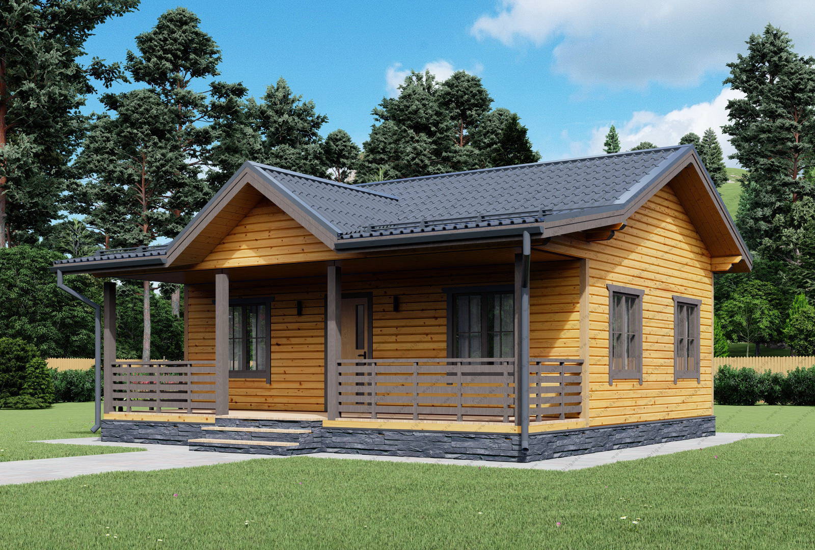 Одноэтажный дом из бруса 6 на 8,5 с террасой площадью 68 м2