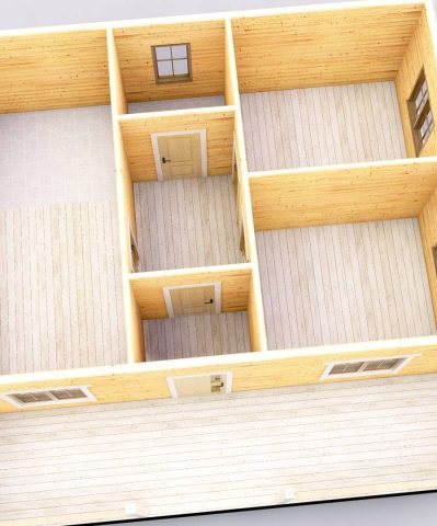 Предлагаем к строительству Одноэтажный дом из бруса 6 на 8,5 с террасой общей площадью всех помещений 68 кв.м и габаритными размерами самого сруба 6х8 за 1040000 рублей из обычного бруса сечением 150 на 150 мм или за 1199000 рублей из профилированного бруса сечением 140 на 140 мм. Из сухого профилированного бруса (камерной сушки) Одноэтажный дом из бруса 6 на 8,5 с террасой обойдется 1253000 рублей под ключ.