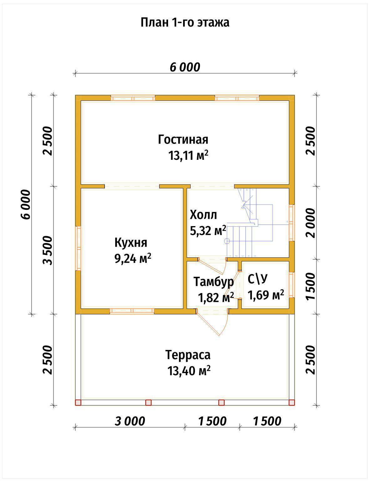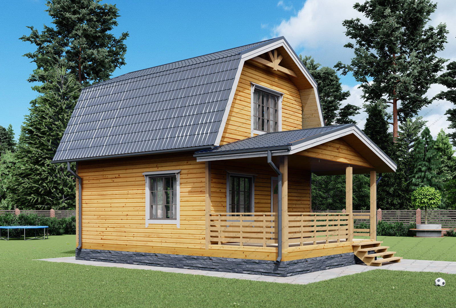 Дом из бруса 6х6 с ломаной крышей площадью 78 м2