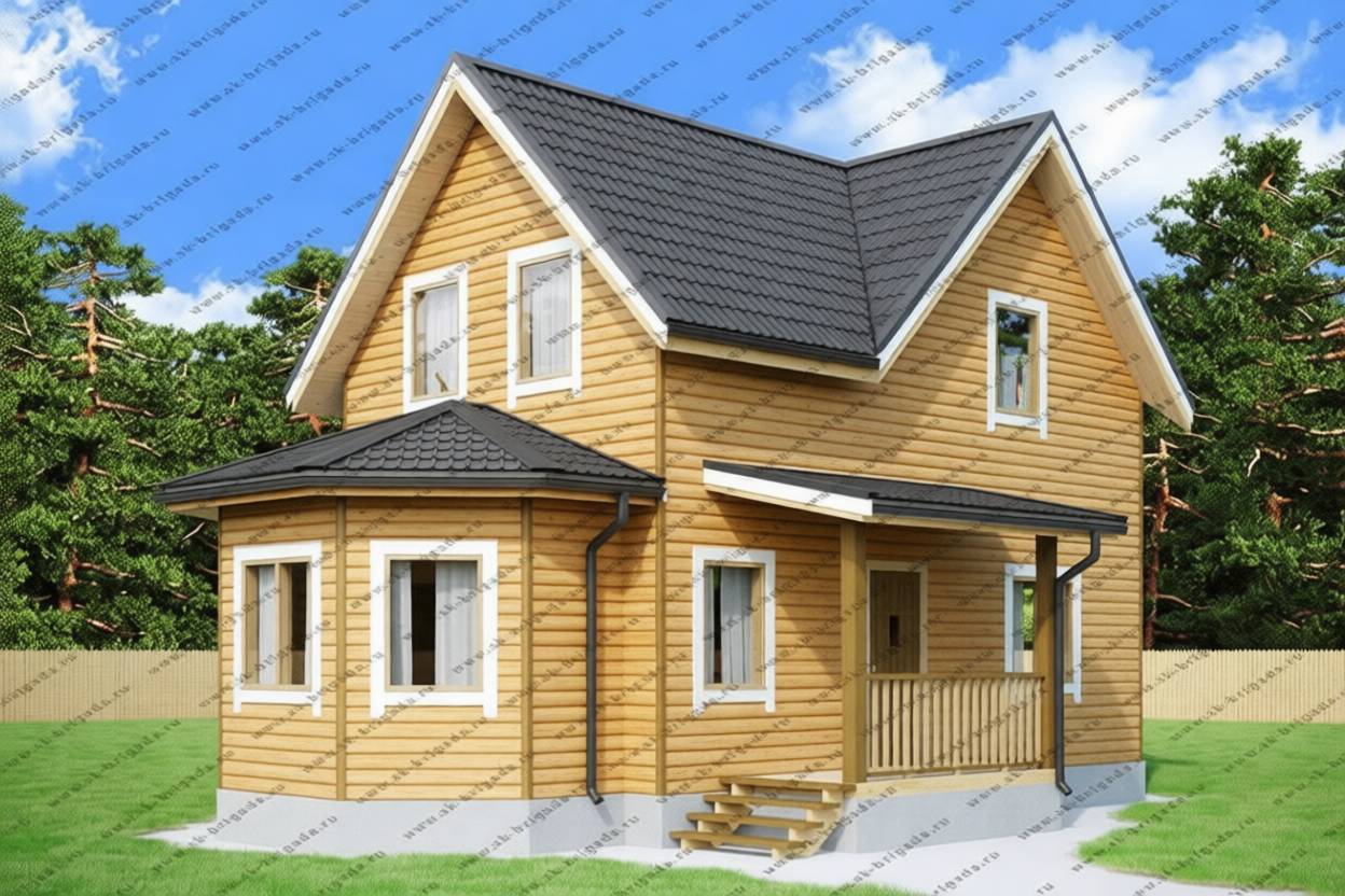 Предлагаем к строительству Дачный дом из бруса с эркером общей площадью всех помещений 88 кв.м и габаритными размерами самого сруба 6х8 за 1677000 рублей из обычного бруса сечением 150 на 150 мм или за 1949000 рублей из профилированного бруса сечением 140 на 140 мм. Из сухого профилированного бруса (камерной сушки) Дачный дом из бруса с эркером обойдется 2074000 рублей под ключ.