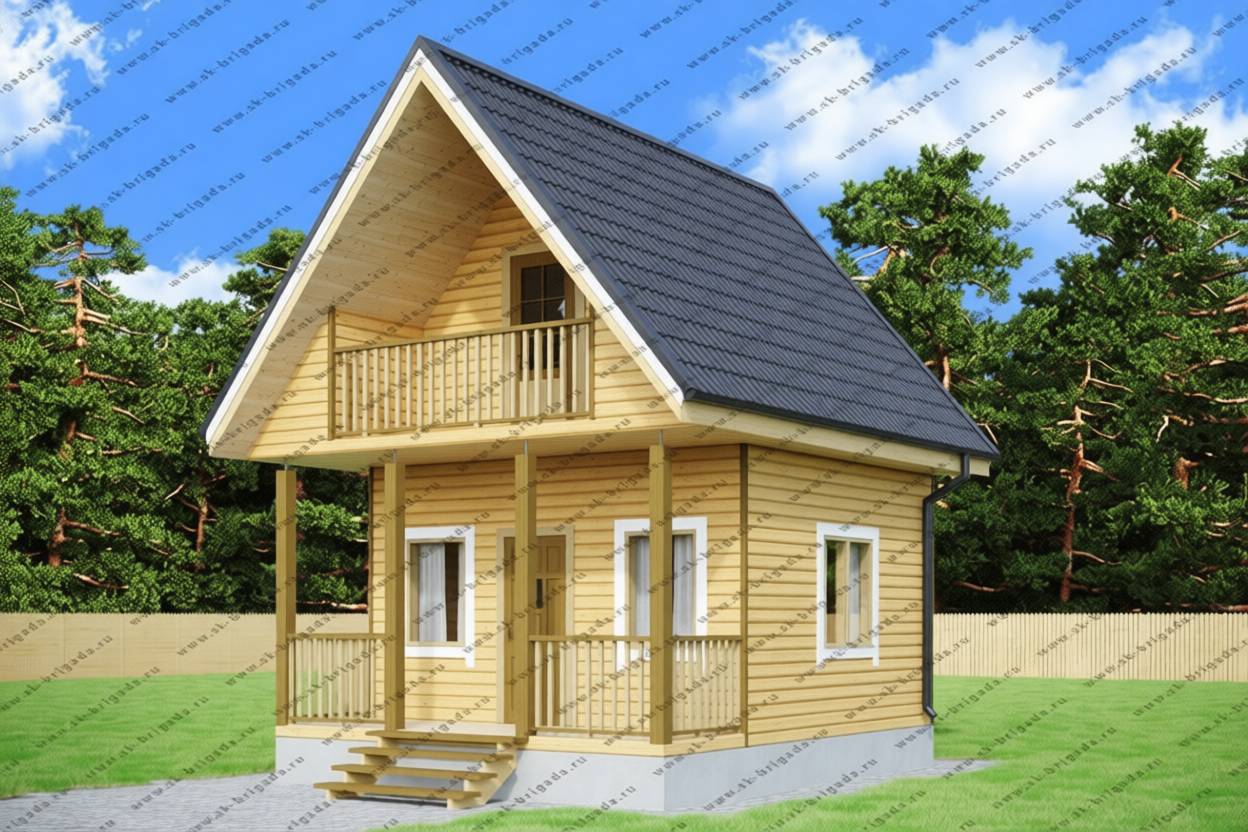 Дом из бруса 4х6 с мансардой площадью 45 м2