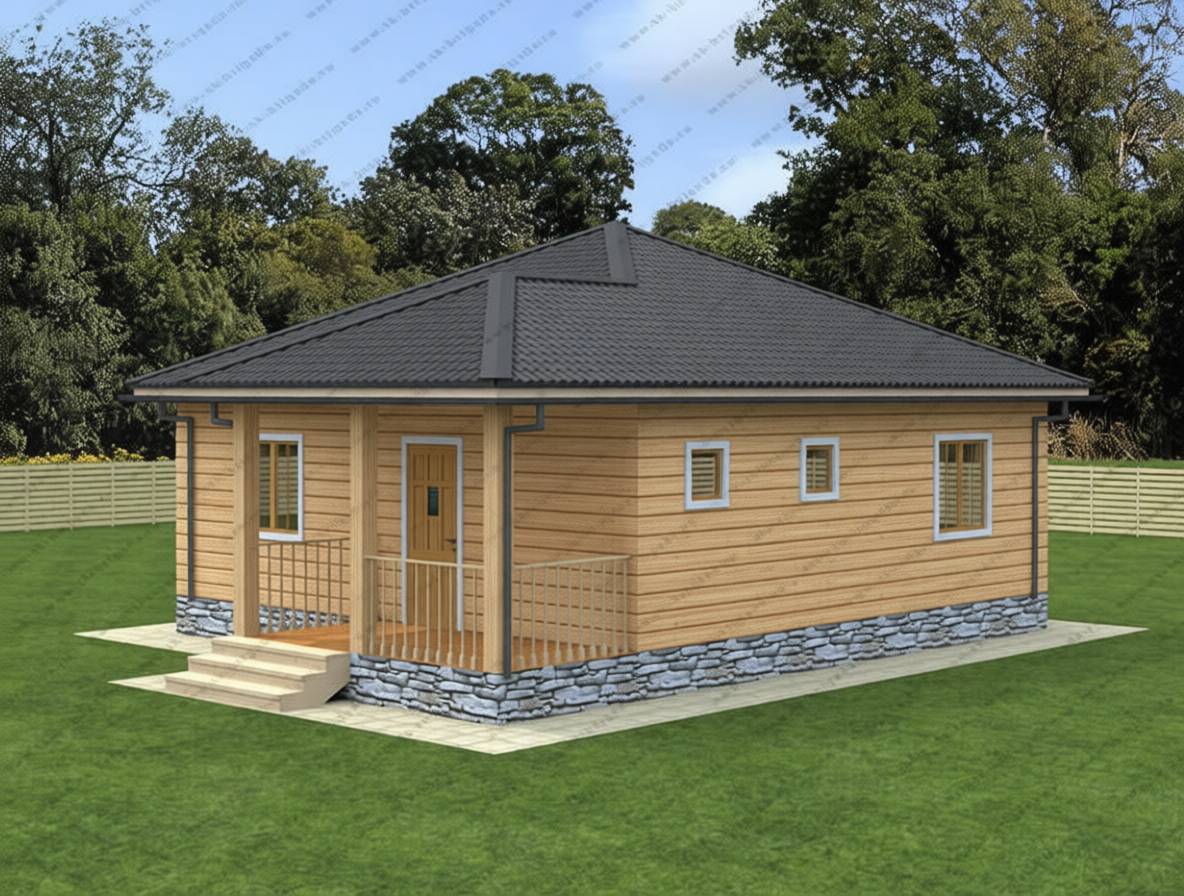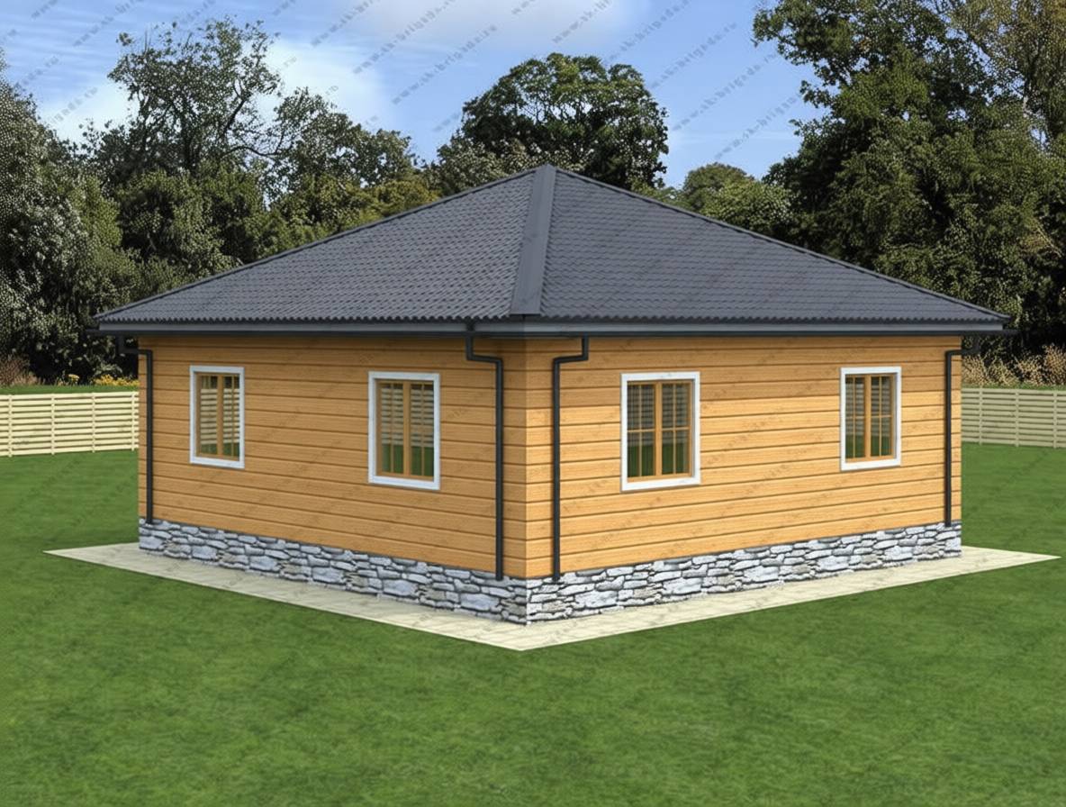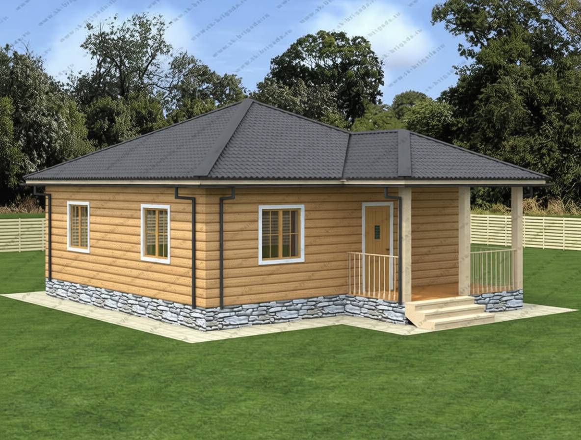 Одноэтажный дом 8х8 из профилированного бруса площадью 65 м2