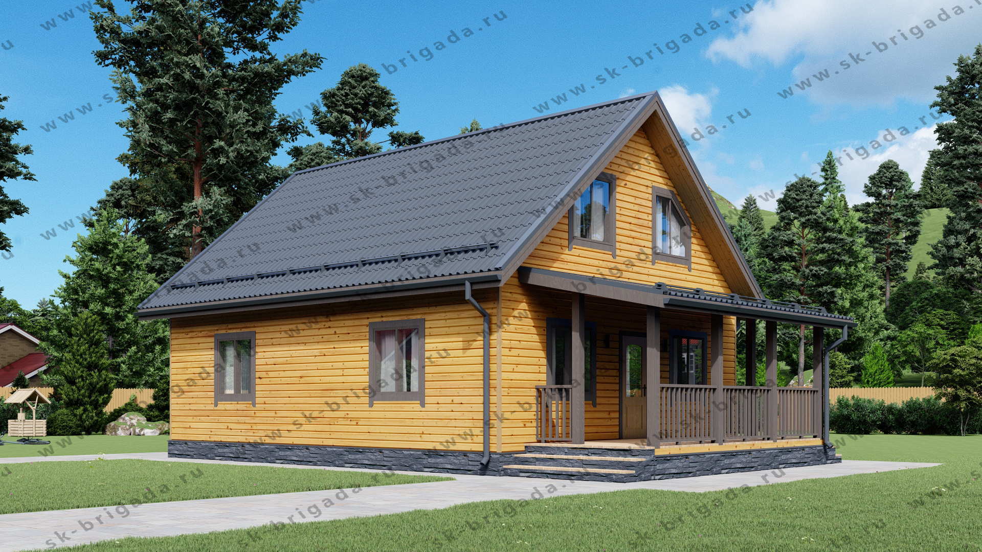 Фундамент для дома по проекту КД-25 свайно-винтовой, цена которого уже включена или более долговечные железобетонные сваи (немного дороже). Более дорогой и основательный является ленточный фундамент или монолитная плита. Уже в базовой комплектации проект КД-25 имеет кровлю из металлочерепицы, цвет которой выбирает заказчик.