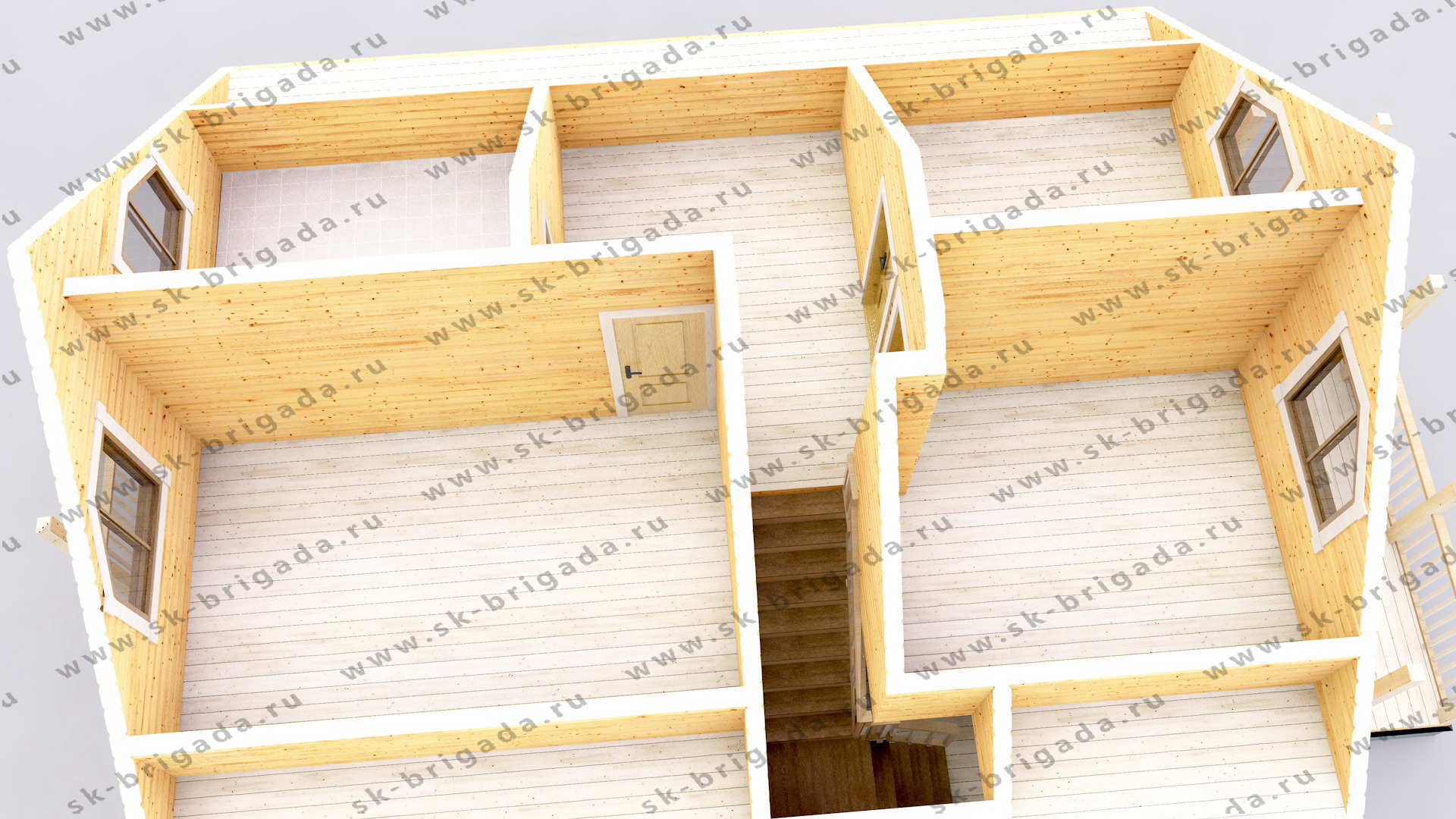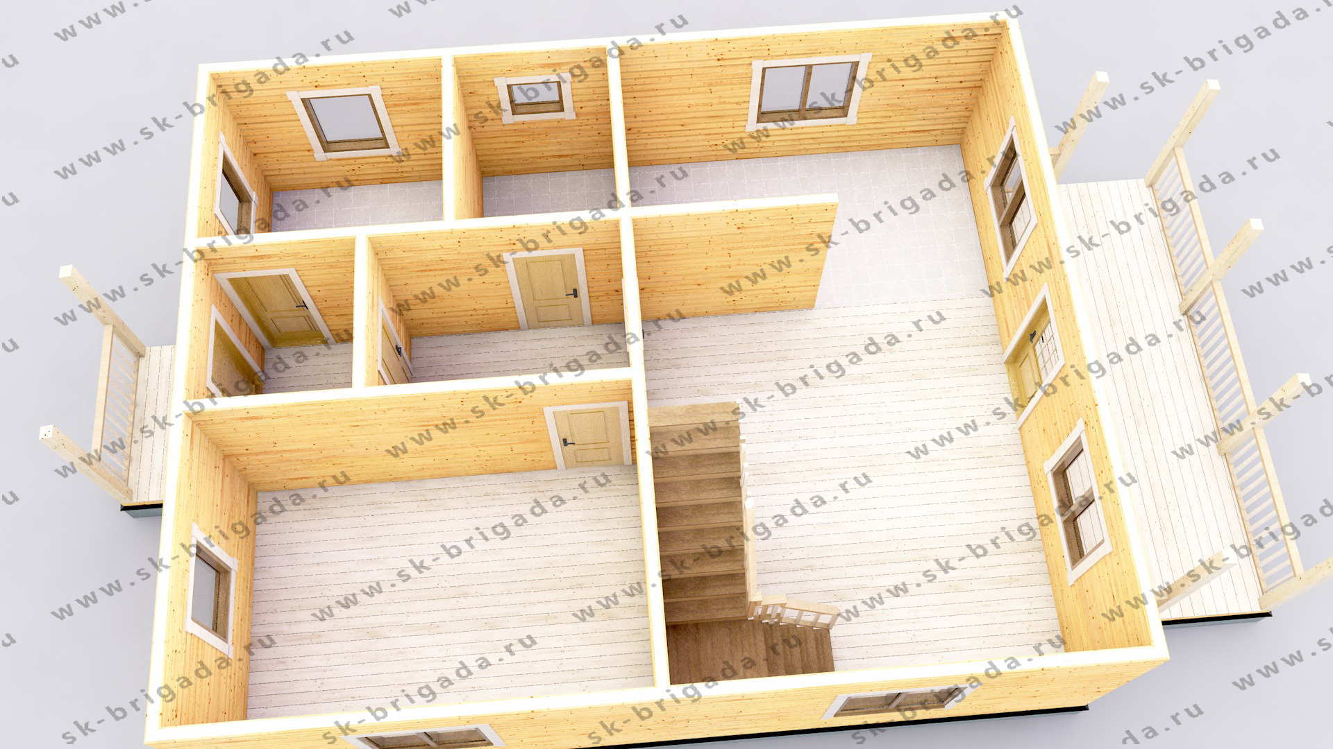 - Пол на террасе/крыльце (при наличии) – строганная доска 45х140 мм камерной сушки. Подшив стен и потолка на террасах – имитация бруса камерной сушки, сорт АВ.