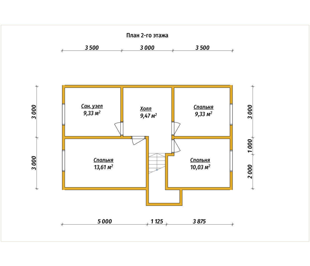 - Высота 1 этажа = 2,7 м, 2 этажа = 2,5 м;