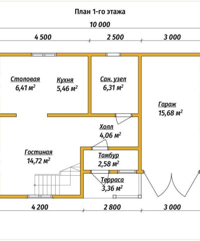- Высота 1 этажа = 2,7 м, 2 этажа = 2,5 м;