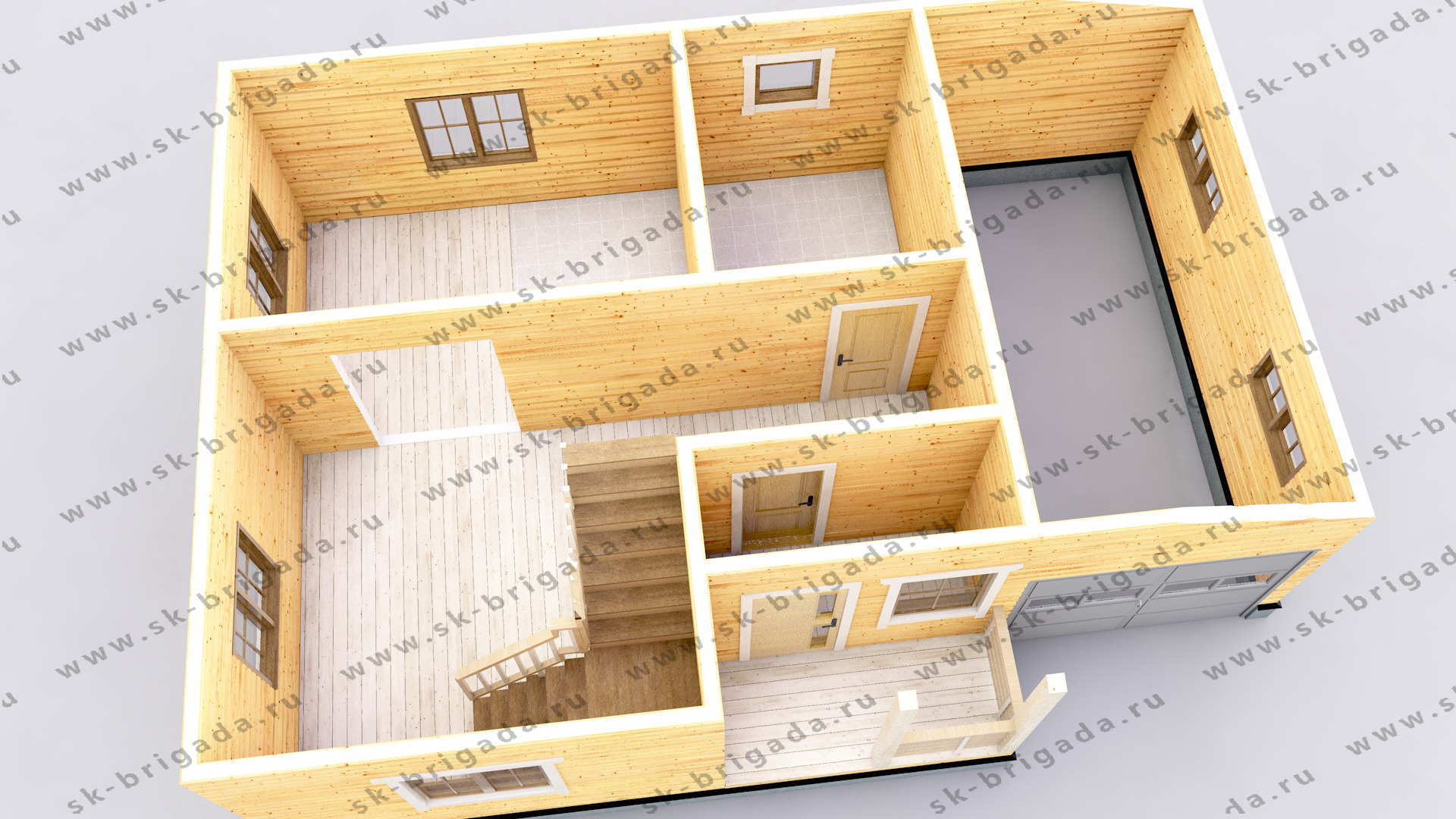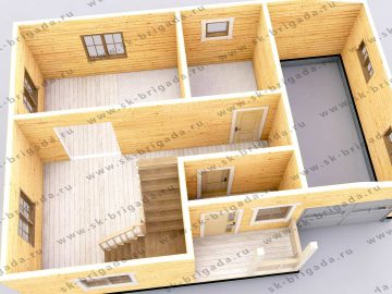 - Пол на террасе/крыльце (при наличии) – строганная доска 45х140 мм камерной сушки. Подшив стен и потолка на террасах – имитация бруса камерной сушки, сорт АВ.