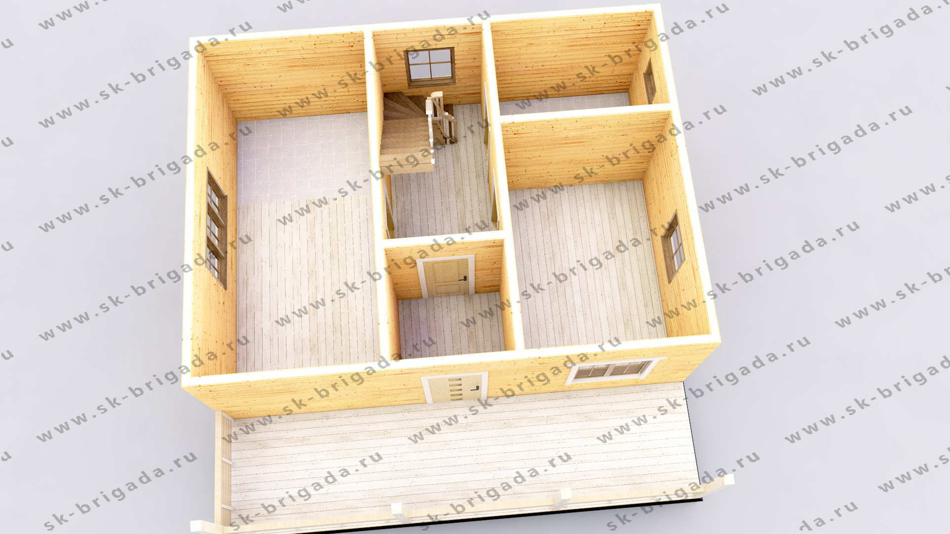 - Пол на террасе/крыльце (при наличии) – строганная доска 45х140 мм камерной сушки. Подшив стен и потолка на террасах – имитация бруса камерной сушки, сорт АВ.