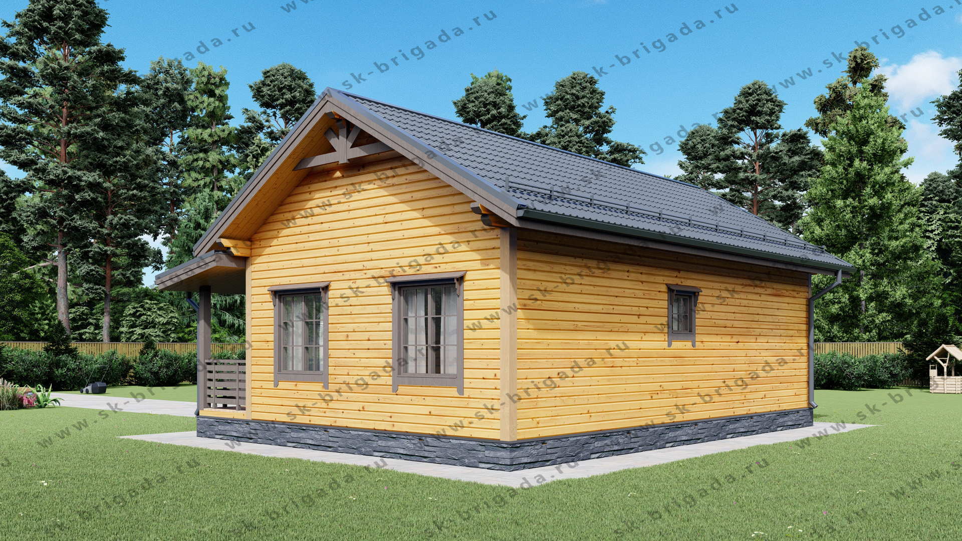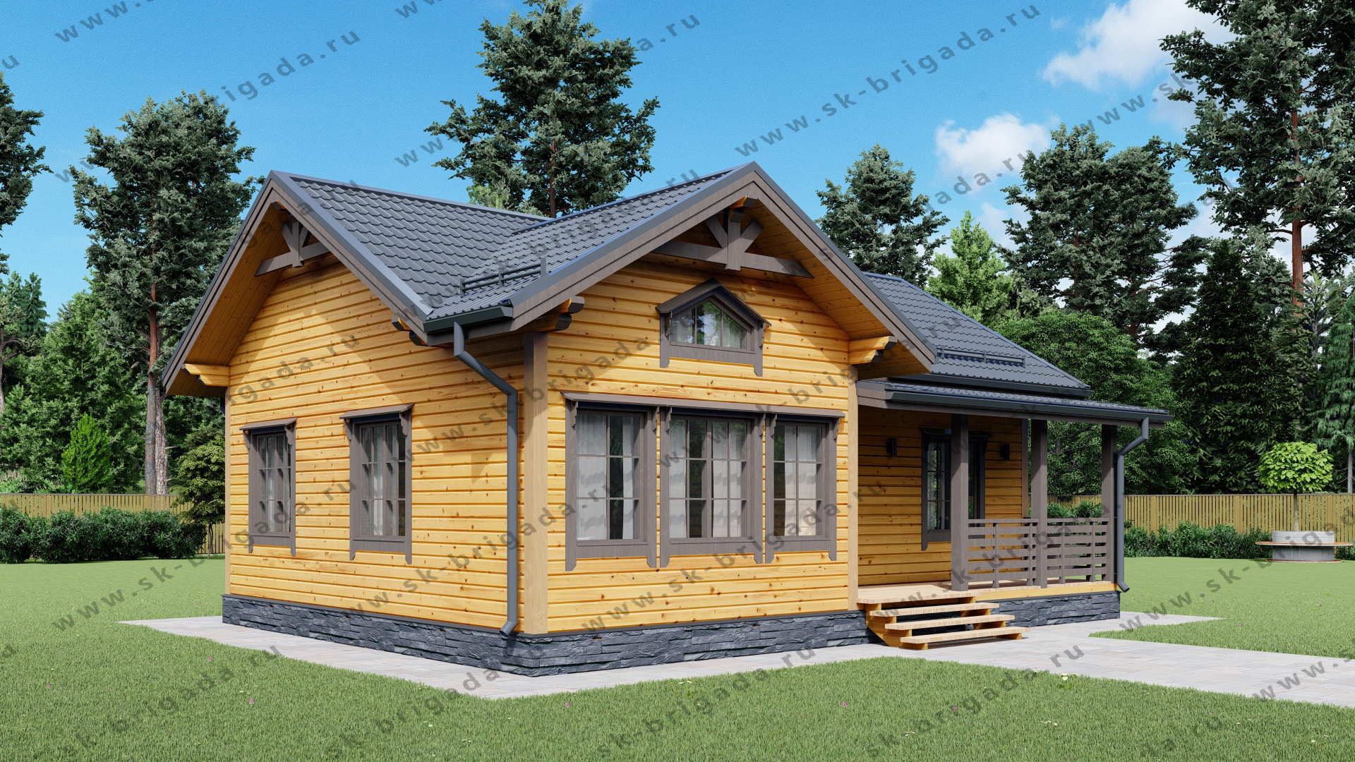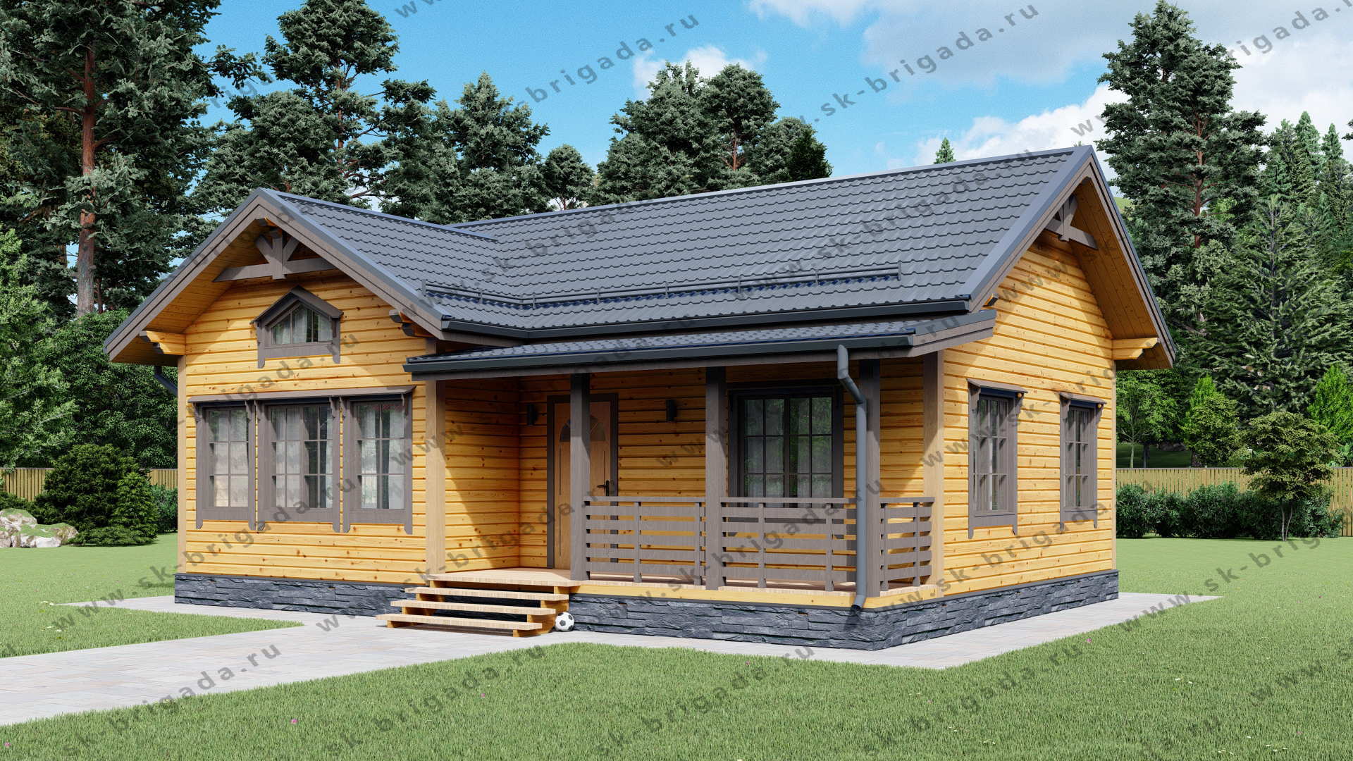 Фундамент для дома по проекту КД-60 свайно-винтовой, цена которого уже включена или более долговечные железобетонные сваи (немного дороже). Более дорогой и основательный является ленточный фундамент или монолитная плита. Уже в базовой комплектации проект КД-60 имеет кровлю из металлочерепицы, цвет которой выбирает заказчик.