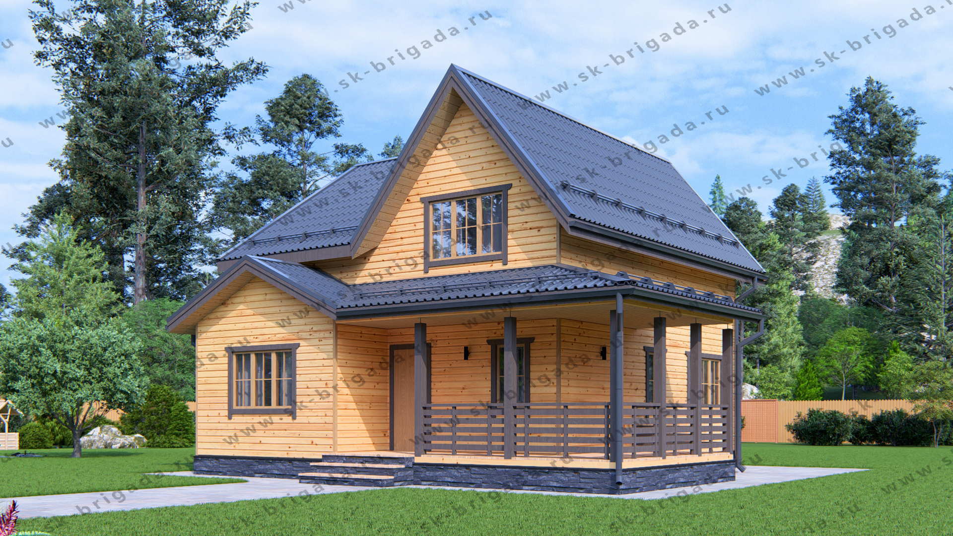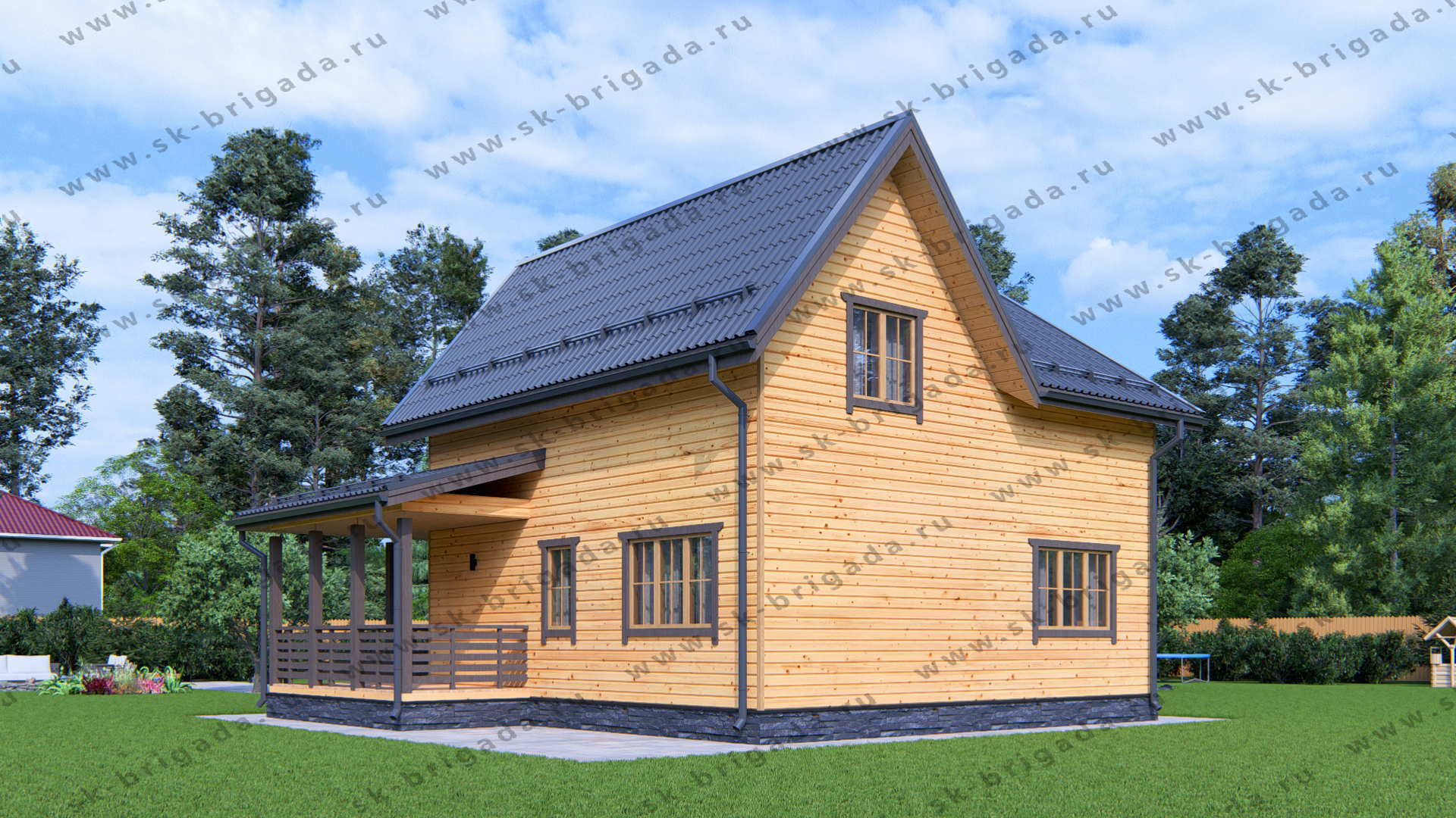 Каркасный дом 8х9 с террасой
