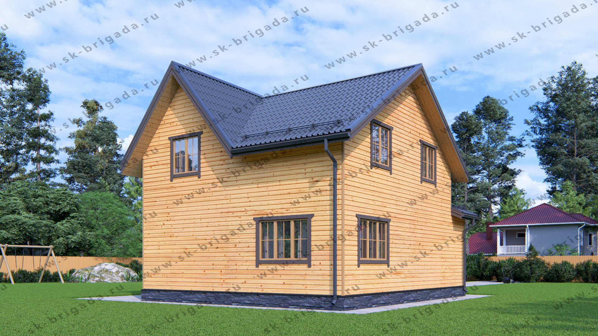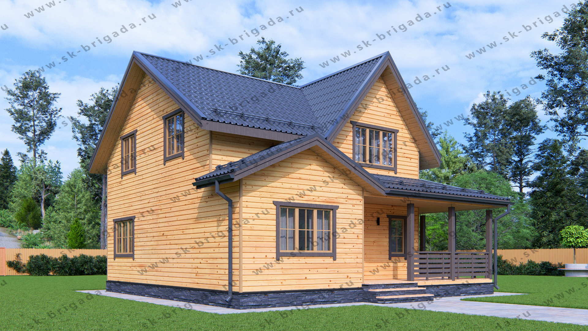 - Внешняя и внутренняя отделка – имитации бруса, сорт (AB) толщиной 16 мм камерной сушки;